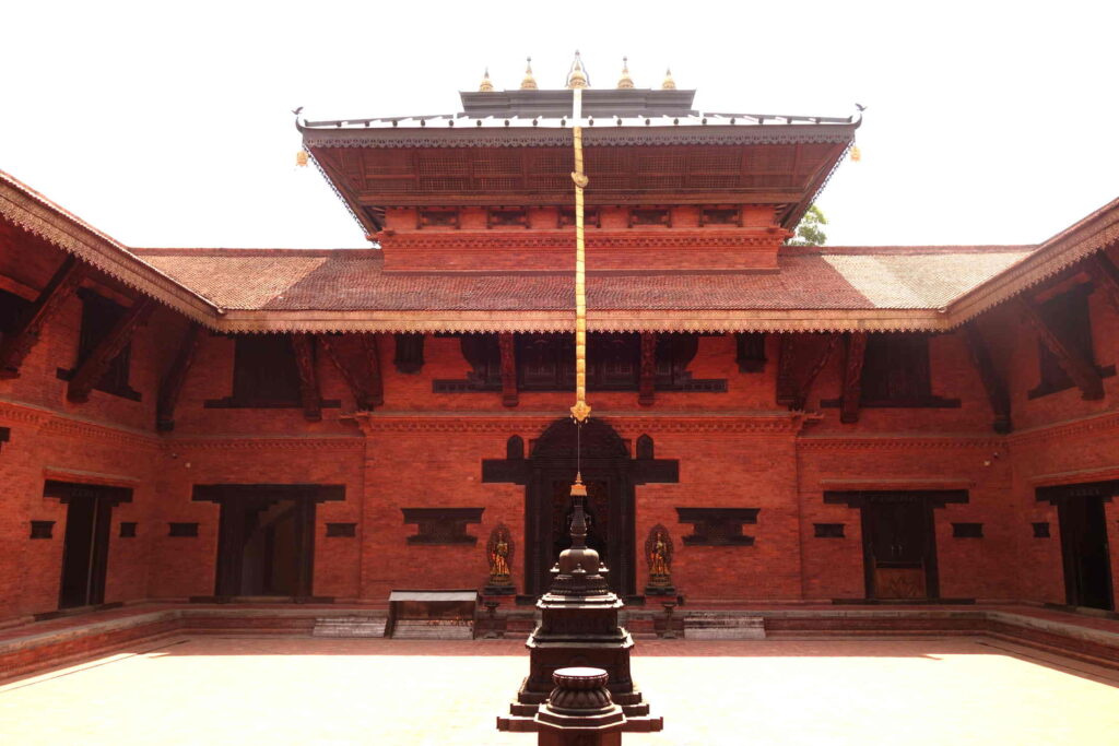 Spannend war es aber allemal, an diesem Ort zu stehen, an dem ein so wichtiges Ereignis passiert sein soll. Überall um den Stein rum waren die Steine golden verziert oder in die rote Farbe getaucht, die bei religiösen Riten als Tika, ein Punkt, auf die Stirn getupft wird. Natürlich lagen auch Opfergaben herum wie Reis und Geld.