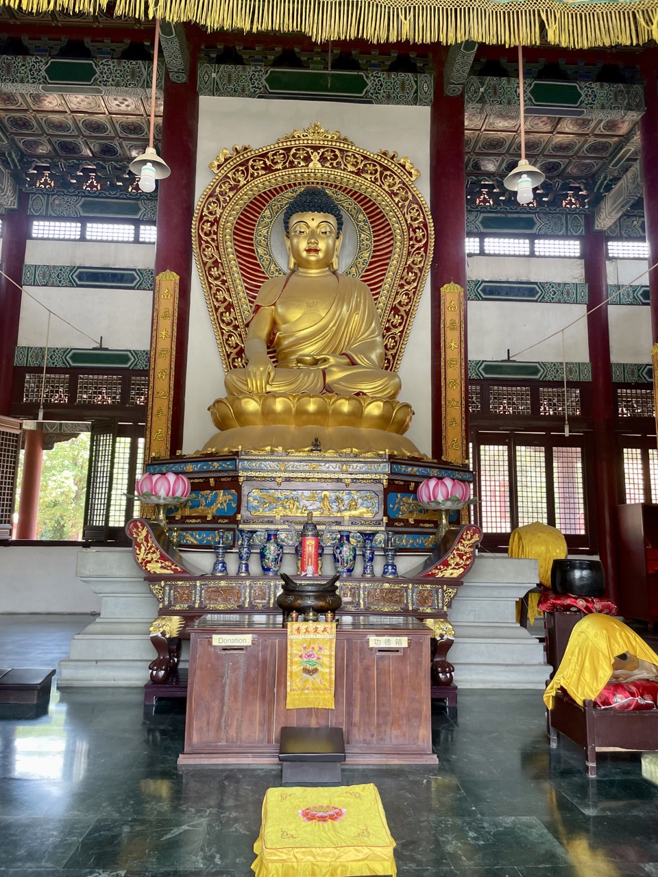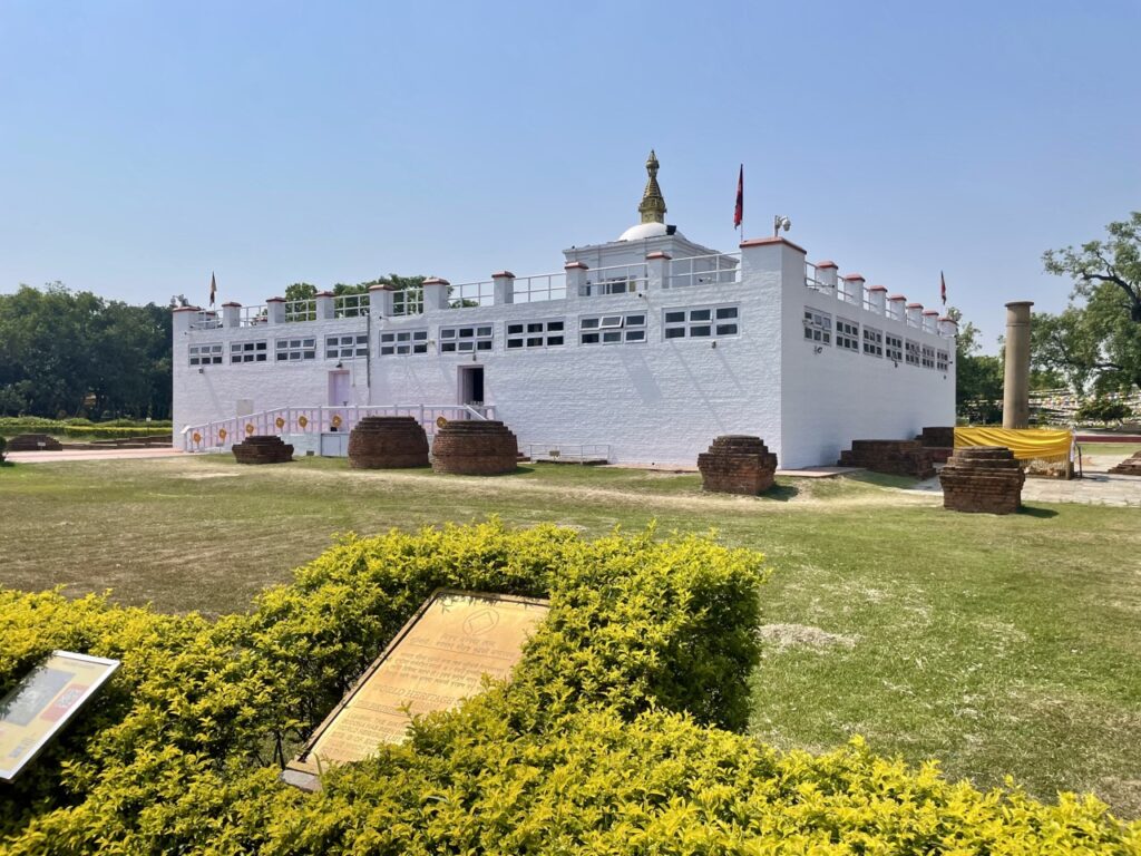 Der erste Stopp war tatsächlich der Geburtsort von Buddha – bzw. der Stein, der markiert, wo er geboren wurde. Von außen sieht das Ganze so aus: