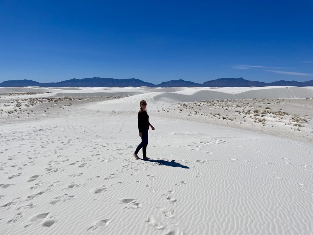 Außerdem sind wir mit Tom und Bobbi noch zu den White Sands gefahren. Das sind Dünen etwa drei Stunden entfernt, die genau das sind, was der Name aussagt: Sie bestehen aus weißem Sand, was beeindruckend aussah.