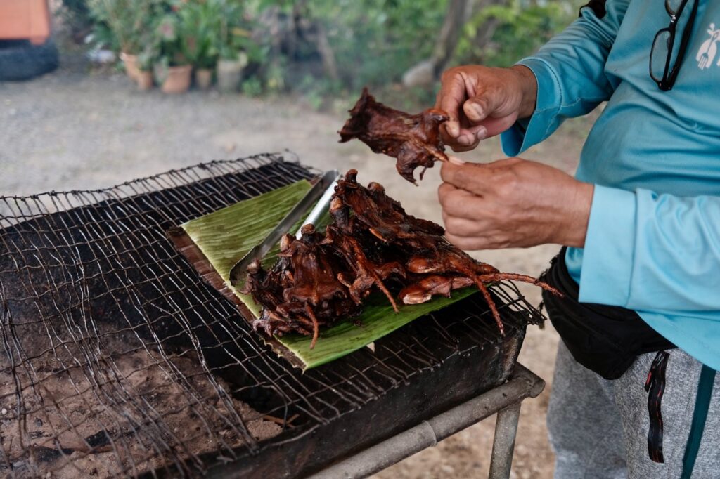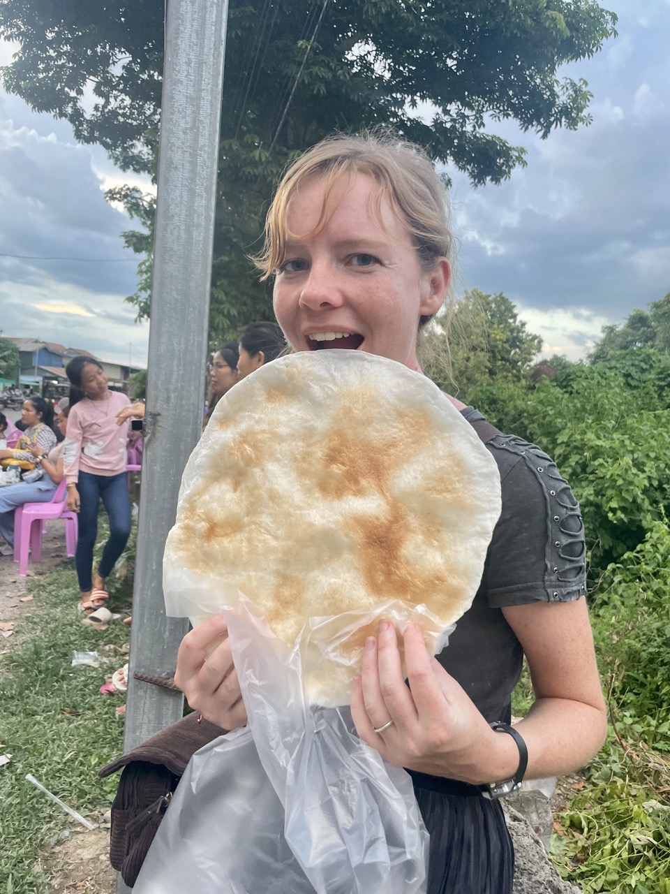 Als letztes haben wir noch etwas Spannendes zu Essen probiert. Am Straßenstand gab es Ratte. Unser Fahrer hat uns erzählt, dass er das als Kind immer gegessen hat, wenn sie kein Geld hatten und dass manche Kambodschaner das auch immer noch essen. Wir dachten uns dann, dass wir das doch auch mal probieren wollen und haben uns für 44 Cent zwei Ratten gekauft. Viel Fleisch hatte man zwar nicht dran, aber sie haben ein bisschen wie Schwein geschmeckt.