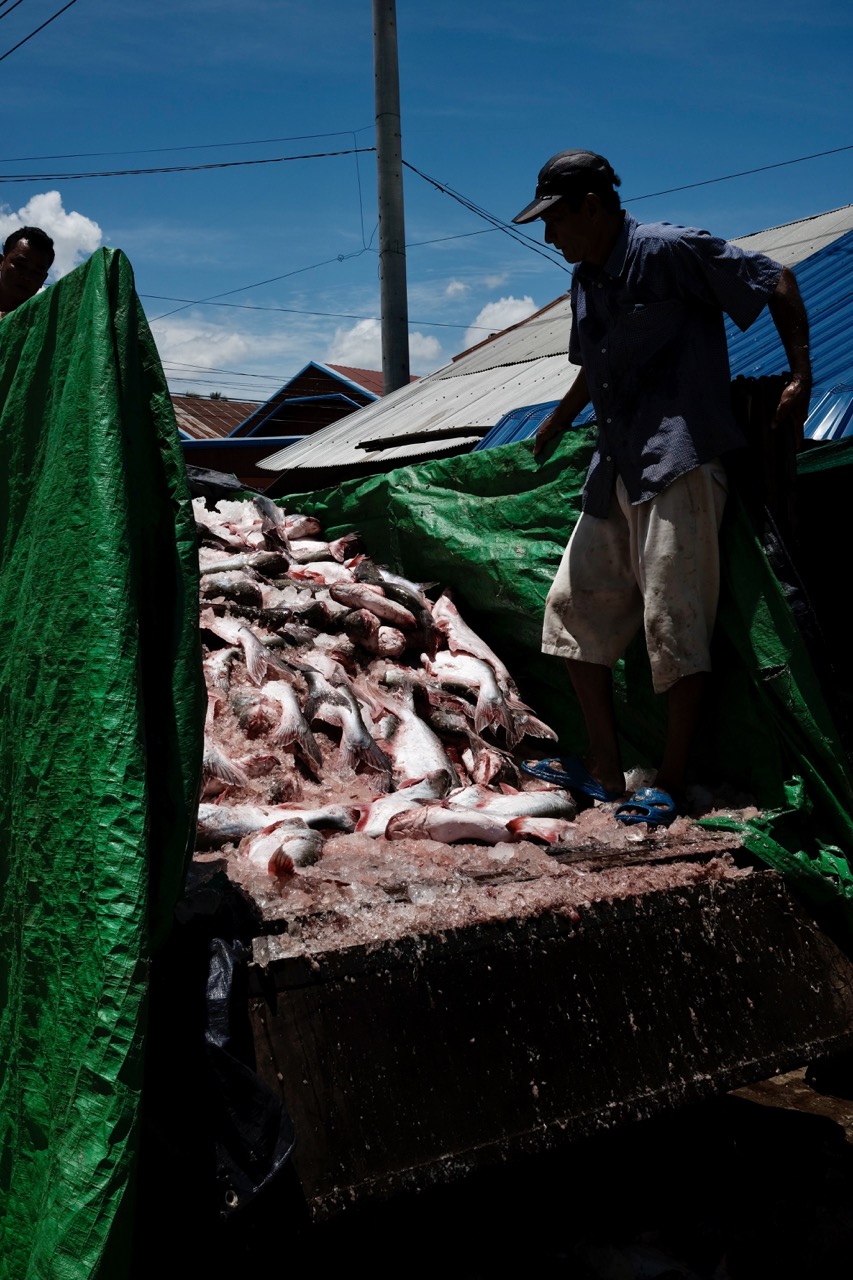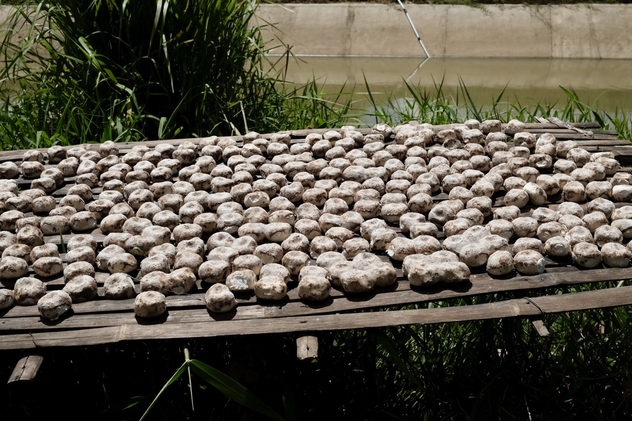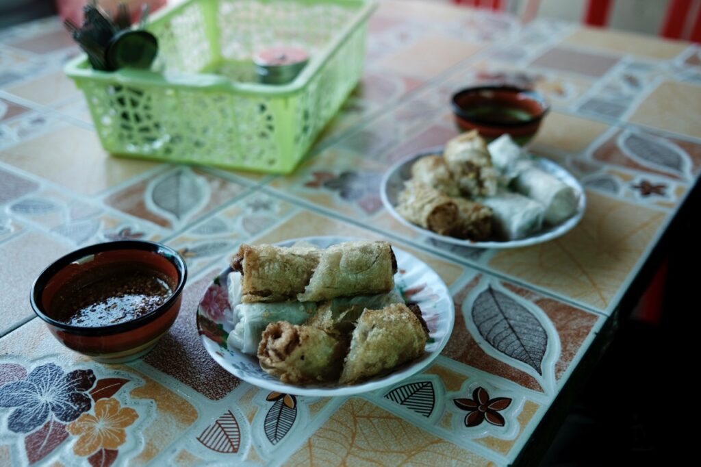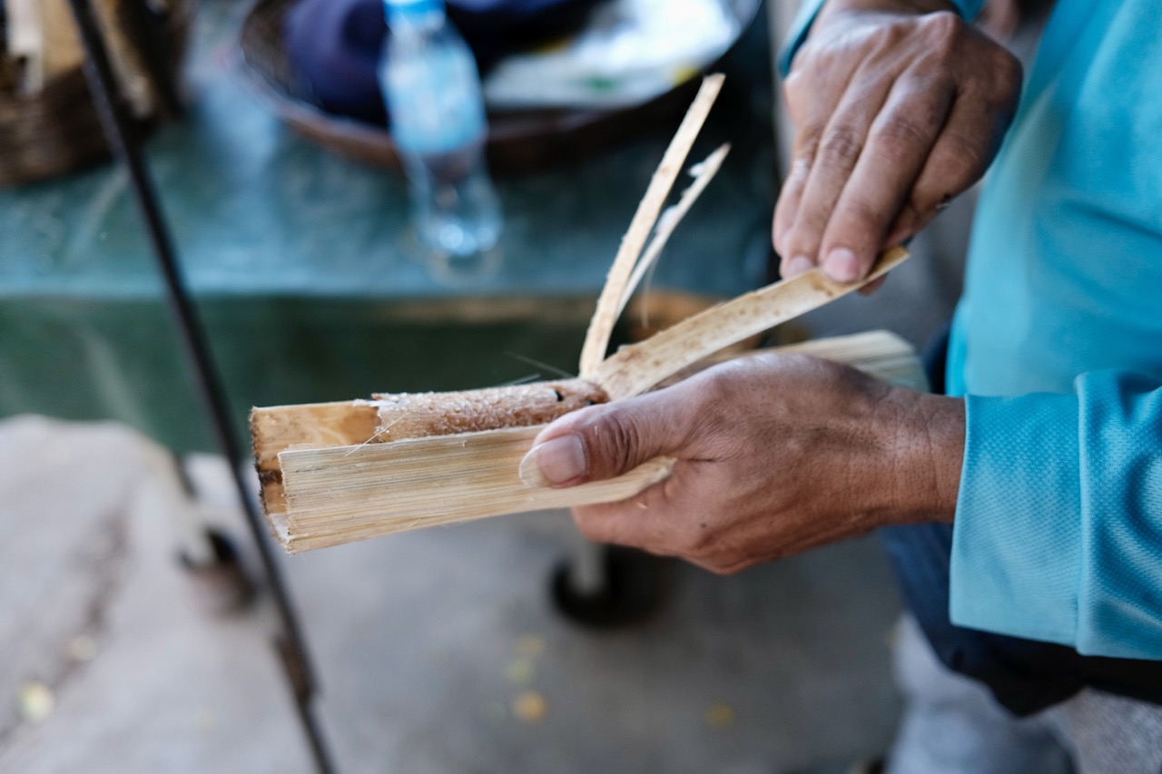 Unterwegs hat unser Guide immer mal wieder an Ständen angehalten, um uns Dinge zu zeigen. Zum Beispiel haben wir uns angesehen, wie man den Teig für die traditionellen Frühlingsrollen macht, wie man Reiswein herstellt. Und es gab „Sticky Rice“, eine Art süßer Reiskuchen, zum Probieren. Zwischendurch waren wir auch kurz auf einem Fischmarkt.