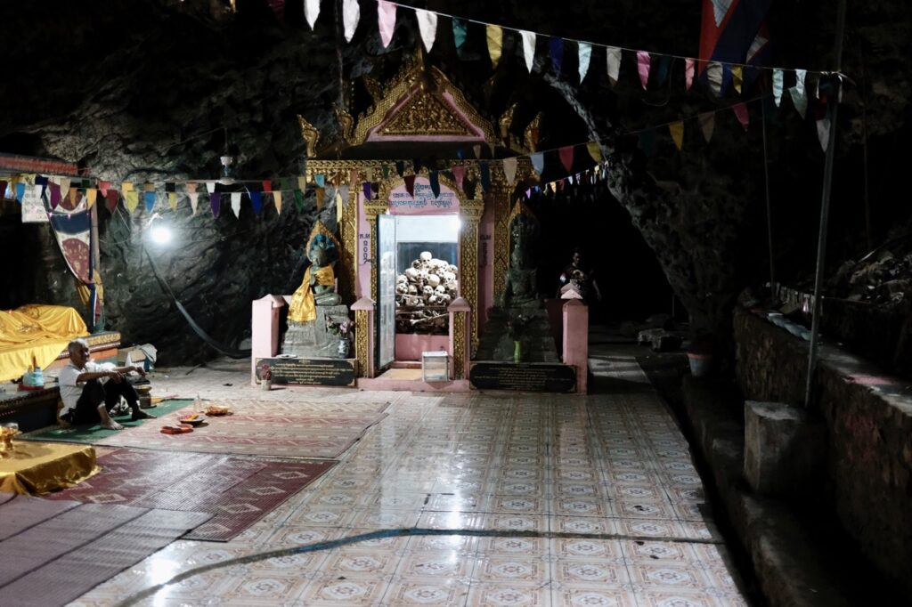 Unser letzter Stopp war auf einem Hügel, wo wir ein weiteres Mal mit der Geschichte Kambodschas konfrontiert wurden. In den 70er Jahren, als Millionen von Menschen umgebracht wurden, wurde so genannte „Killing Fields“ errichtet, wo genau das passiert ist. Dort wurden die Leichen dann in Löcher geworfen und zugeschaufelt. In Battambang gibt es allerdings kein Killing Field, sondern eine „Killing Cave“. Es ist eine natürliche Höhle auf diesem besagten Hügel, an dessen Rand Menschen umgebracht und dann in das Loch geworfen wurden.