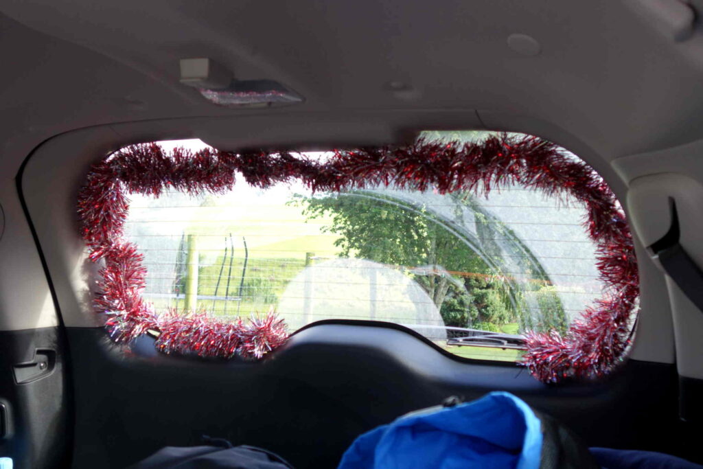 Übrigens: Ich habe darauf bestanden, dass unser Auto anlässlich der Adventszeit ein bisschen Weihnachtsdeko bekommt. Und hier ist das wundervolle Stück: