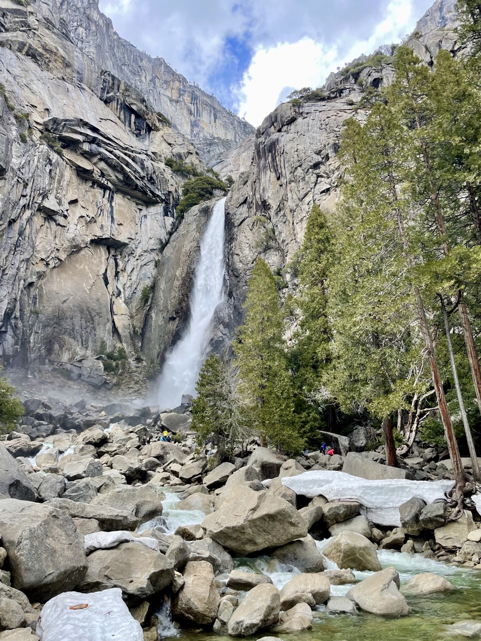 Also sind wir erstmal wieder runter und haben ein wenig ausgepowert den kleinen Rundweg gemacht, um den oberen und unteren Yosemite Fall zu sehen. Der Wasserfall ist übrigens der höchste Wasserfall Nordamerikas.