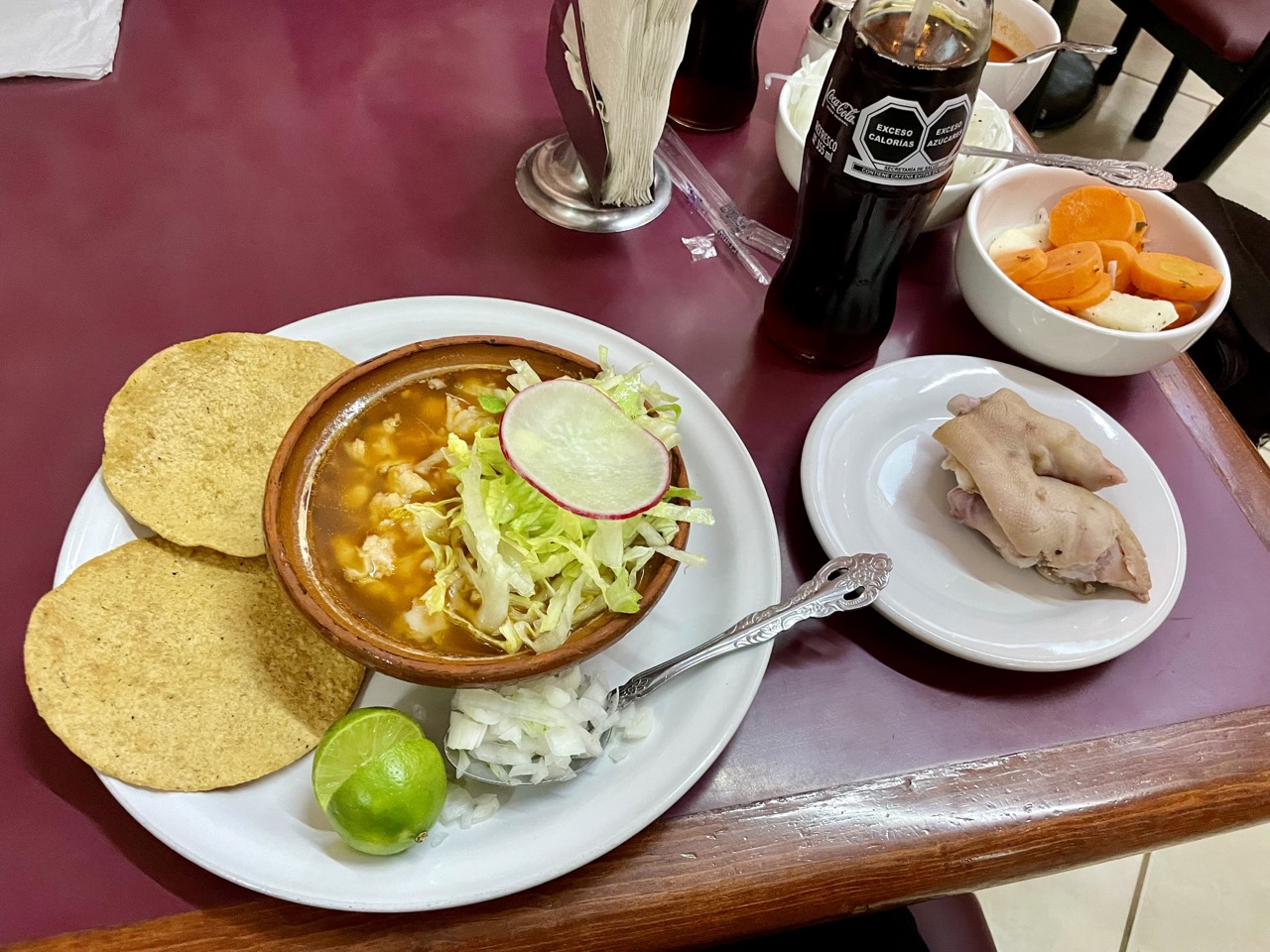 Als das Essen dann schließlich kam, mussten sie ihre ganze Willenskraft dafür aufbringen, nicht loszulachen. Die Speise mit Mole und Hühnchen kam. Auch die Suppe kam wie angedacht. Doch was dann noch kam, waren keine Kartoffeln, sondern ein roher Schweinefuß! Mit einem Lächeln dankten sie dem Herrn, der die Speisen gebracht hatte, und nahmen das Besteck in die Hand. Als er weg war, konnten sie sich das Lachen nicht mehr verkneifen. Was hatten sie da nur falsch verstanden??