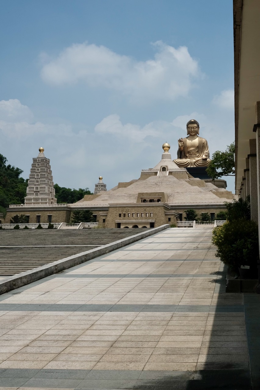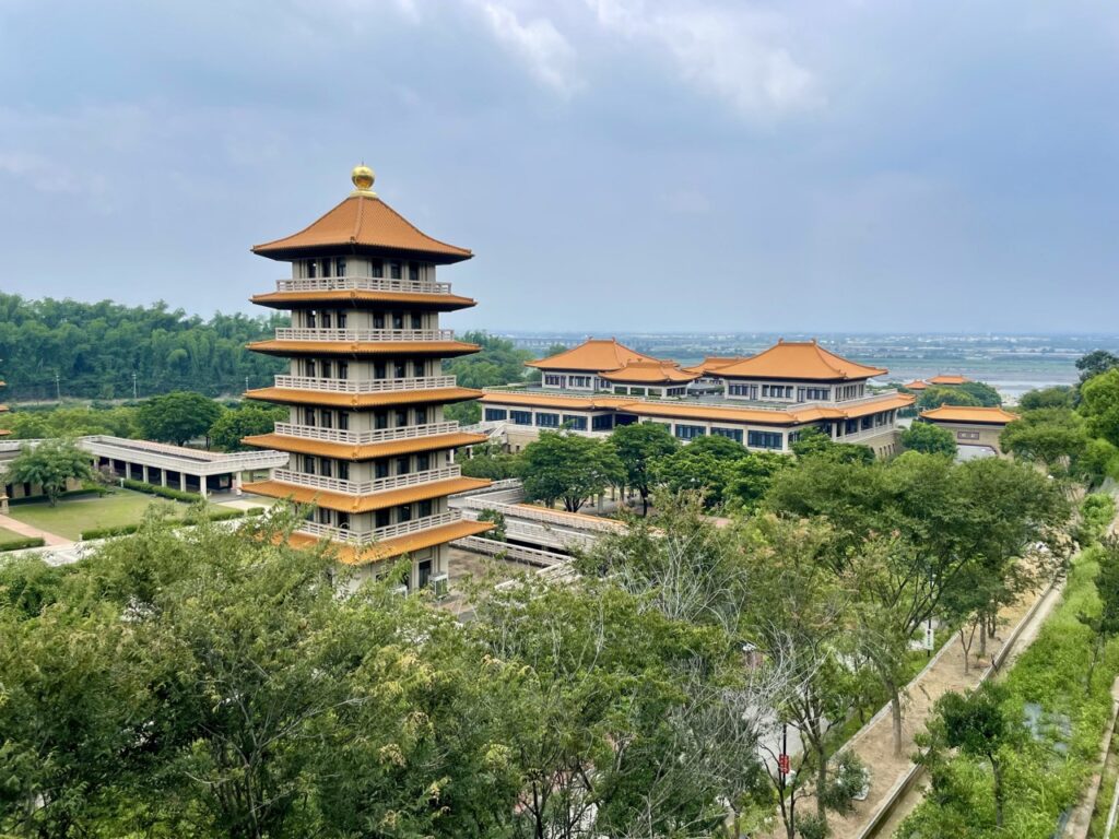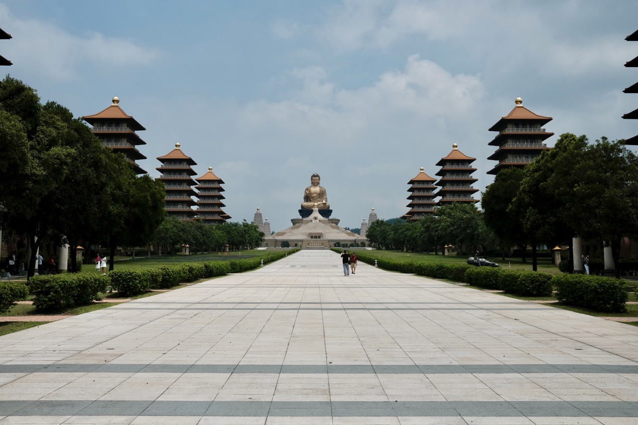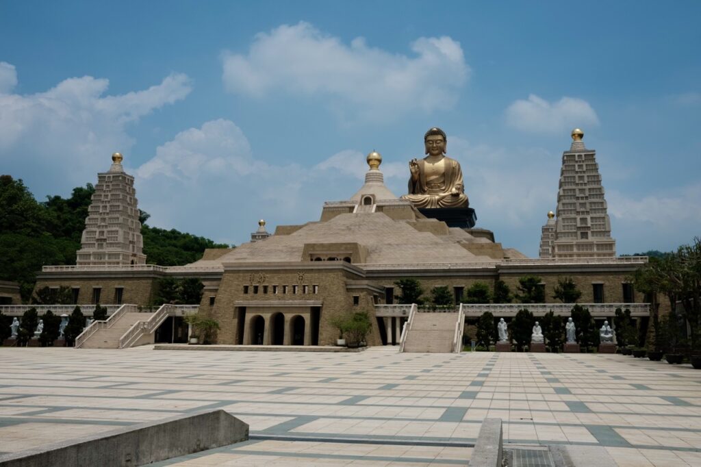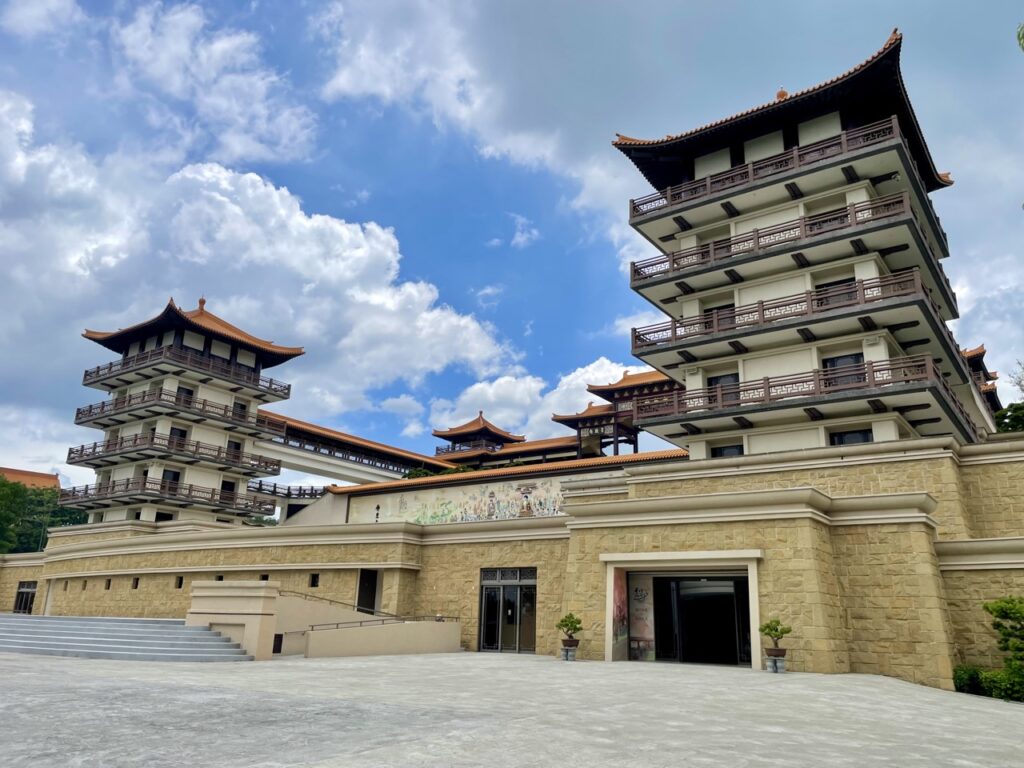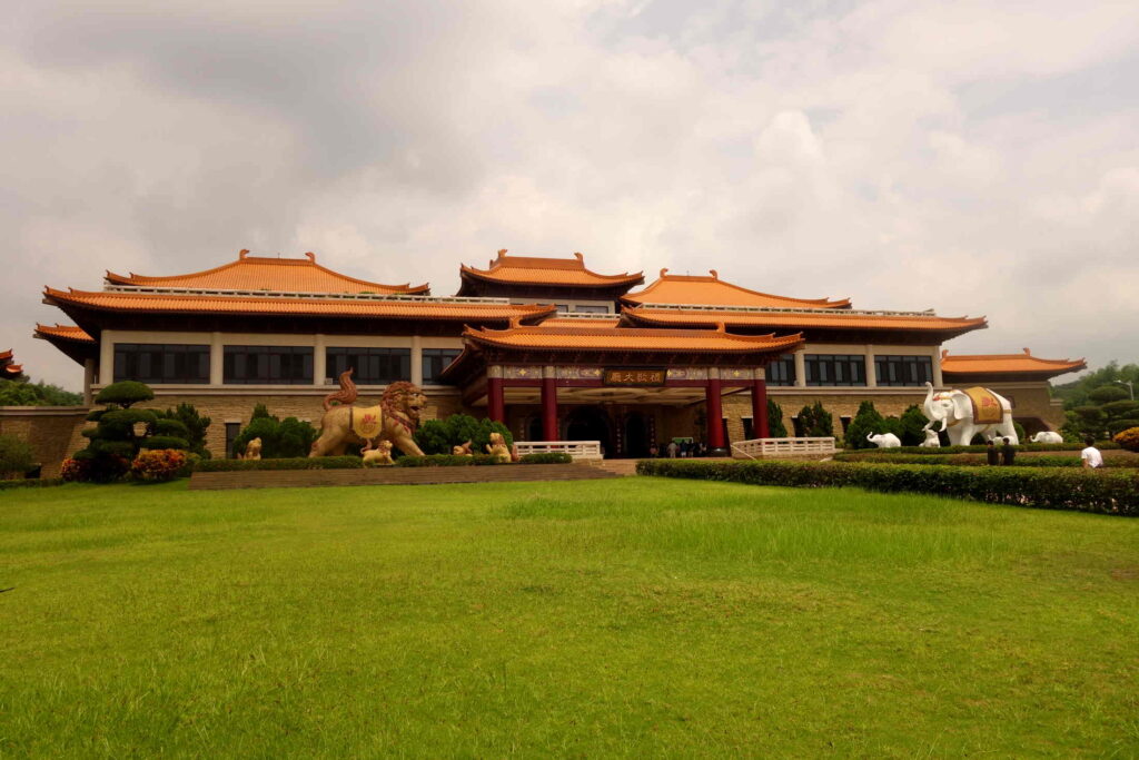 Im Museum selbst ging es aber nicht nur darum, Wissen zu vermitteln. In verschiedenen Räumen konnte man beten und – ganz wichtig – gab es außerdem im Museum eine Zahnreliquie des Buddha. Sie wurde in einem Glasgefäß aufbewahrt, aber das stand so weit oben, dass man eigentlich gar nichts sehen konnte. Es gibt nur ein paar wenige Zahnreliquien, die in China, Japan, Sri Lanka, Singapur, Kalifornien und Indien aufbewahrt sind. Und eben diese weitere, die einzige in Taiwan, im Fo Guang Shan Buddha Museum. Leider durfte man von den meisten Orten im Museum keine Fotos machen, deshalb gibt es kaum etwas von Innen, aber hier habt ihr einen Eindruck, wie das ganze von Außen so aussah: