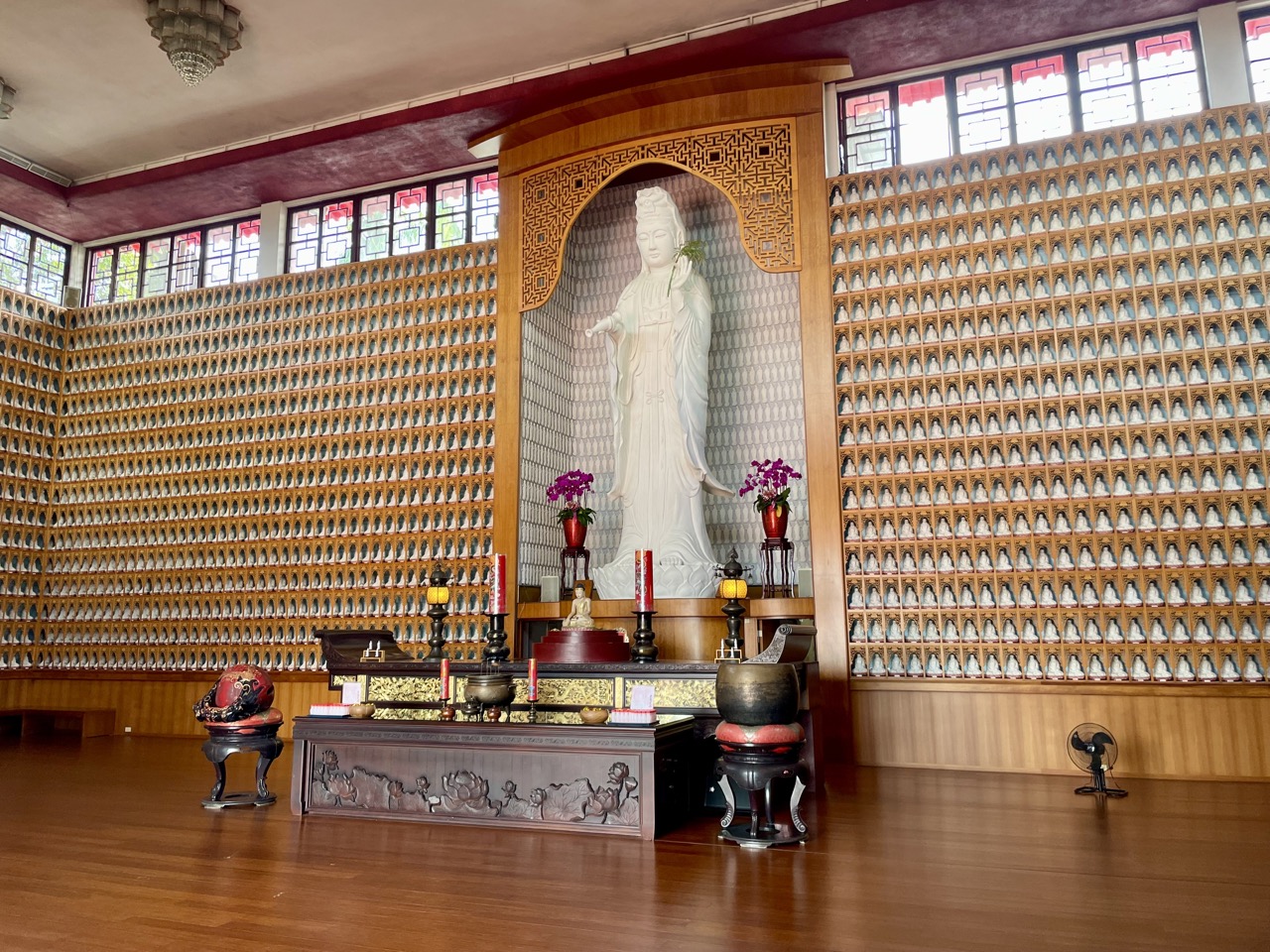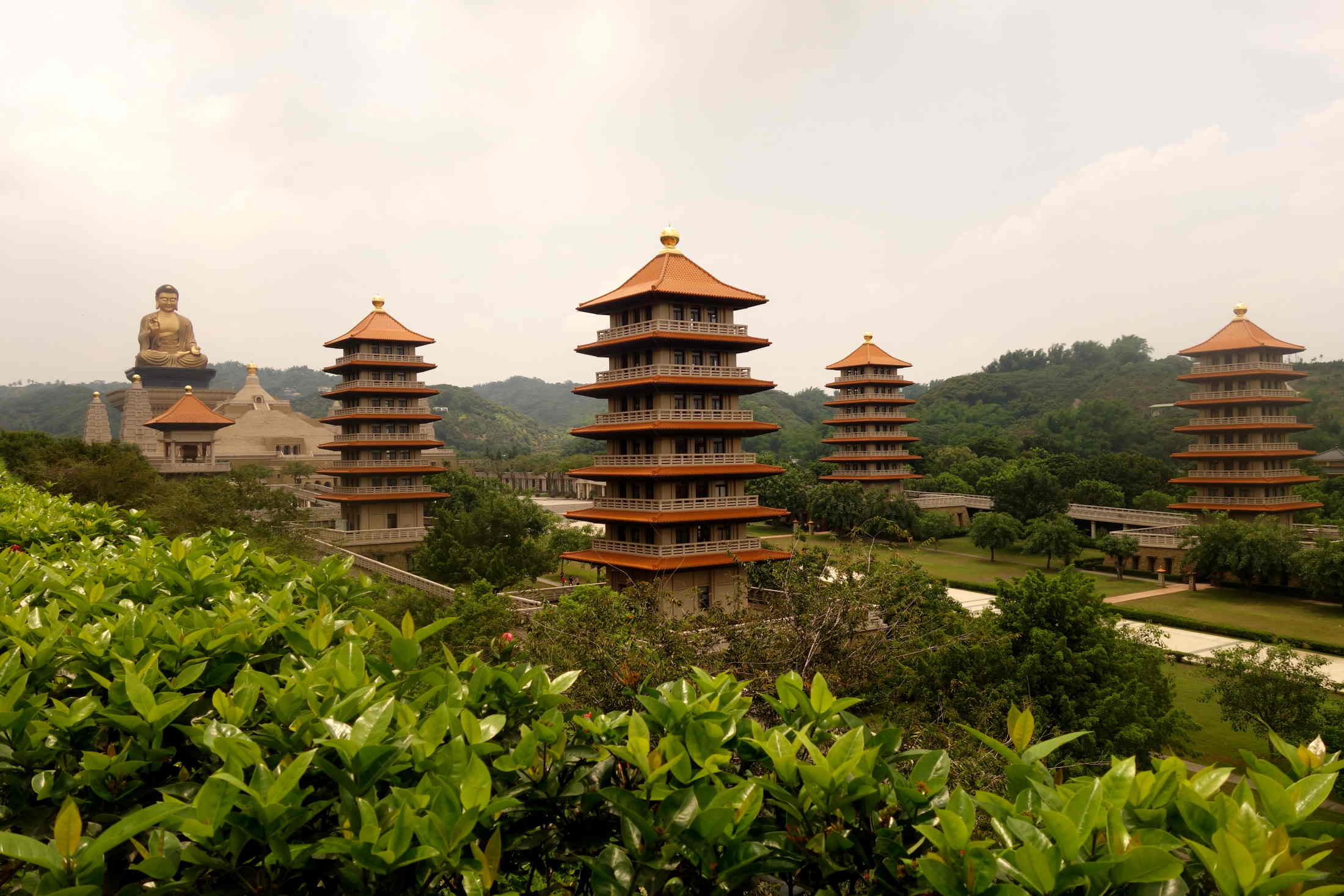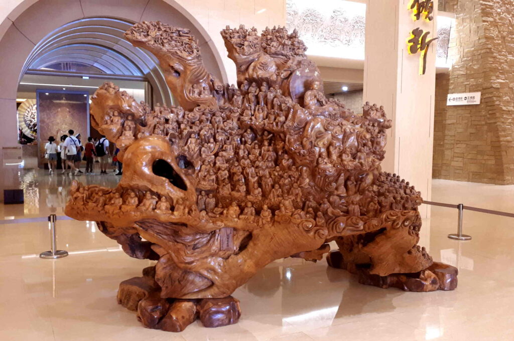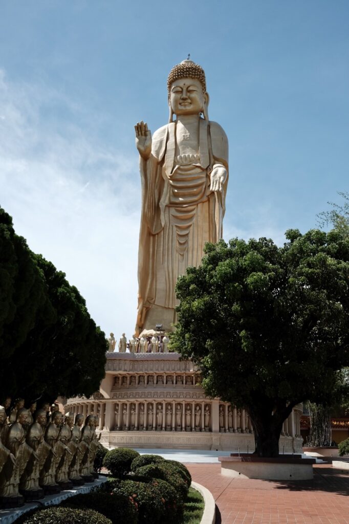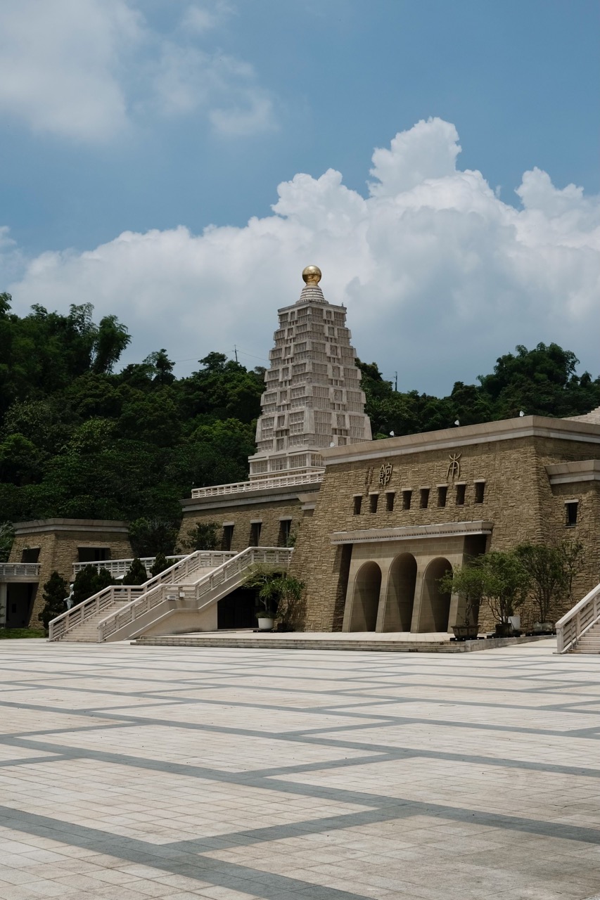 Im Museum selbst ging es aber nicht nur darum, Wissen zu vermitteln. In verschiedenen Räumen konnte man beten und – ganz wichtig – gab es außerdem im Museum eine Zahnreliquie des Buddha. Sie wurde in einem Glasgefäß aufbewahrt, aber das stand so weit oben, dass man eigentlich gar nichts sehen konnte. Es gibt nur ein paar wenige Zahnreliquien, die in China, Japan, Sri Lanka, Singapur, Kalifornien und Indien aufbewahrt sind. Und eben diese weitere, die einzige in Taiwan, im Fo Guang Shan Buddha Museum. Leider durfte man von den meisten Orten im Museum keine Fotos machen, deshalb gibt es kaum etwas von Innen, aber hier habt ihr einen Eindruck, wie das ganze von Außen so aussah: