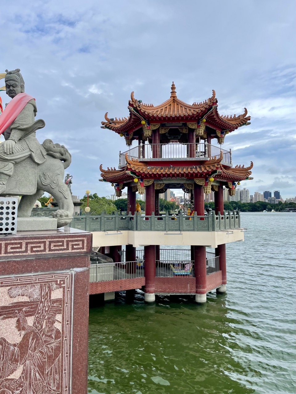 Auf dem Heimweg sind wir noch eben zu einem See, der in der Nähe unserer Haltestelle ist, und haben uns dort einen taoistischen Tempel angesehen. Gerade als wir rein wollten, kam ein junger Taiwaner auf dem Fahrrad angefahren und hat uns gefragt, wo wir herkommen. Smalltalk, dachten wir, aber er konnte ein bisschen Deutsch und wollte uns den Tempel zeigen, um sein Deutsch zu üben. Wir haben zugestimmt und tatsächlich war es dann sehr nett! Er hat uns viel über die Religion erzählt und unsere Fragen beantwortet, was es mit den ganzen Ritualen auf sich hat.
