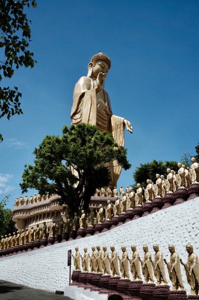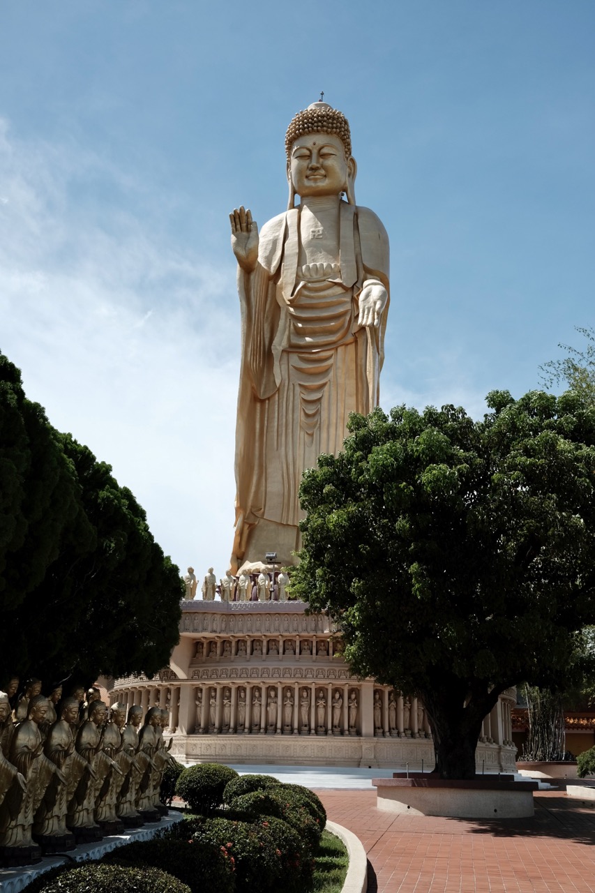 Das Fo Guang Shan Kloster in der Nähe von Kaohsiung ist das größte buddhistische Kloster in Taiwan. 1967 wurde es eröffnet und 2011 um das Buddha-Museum erweitert. Eigentlich heißt es, das Buddha-Museum ist das eigentlich Sehenswerte und dazu kommen wir auch gleich. Aber erstmal wollen wir euch ein paar Fotos vom Kloster selbst zeigen. Das allein war nämlich schon ziemlich beeindruckend! Viele Menschen waren da auch nicht, weil die sich vor allem beim Buddha-Museum herumgetrieben haben.