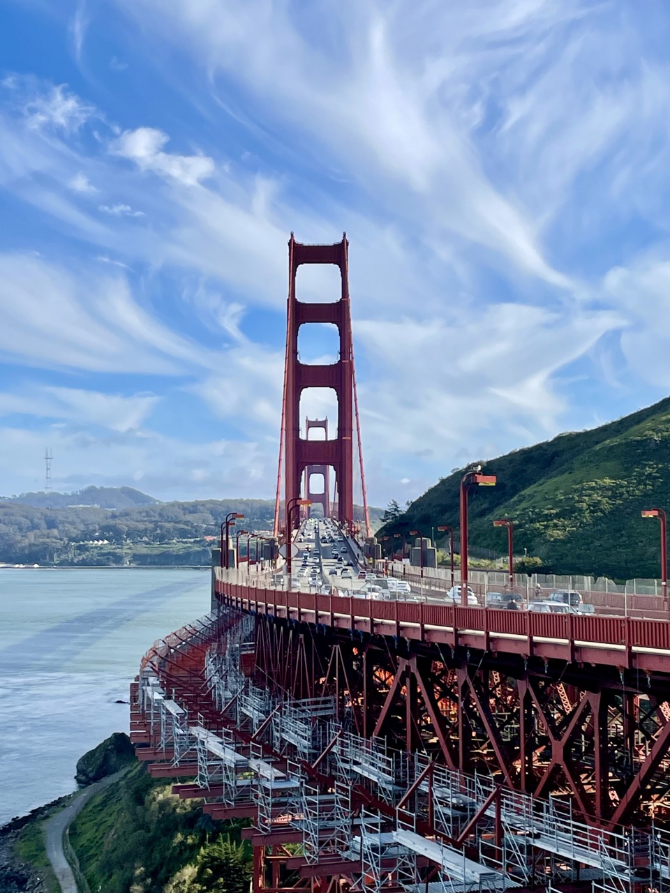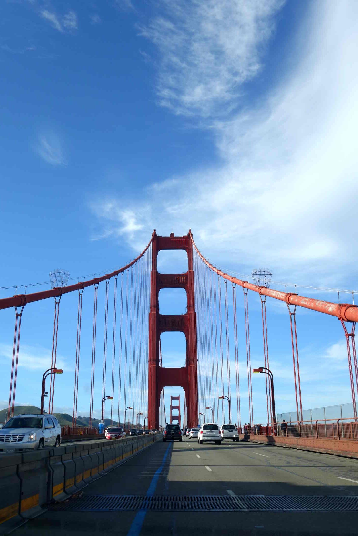 Wow, welches Glück, die Golden-Gate-Brücke nicht im Nebel, sondern bei blauem Himmel und Sonnenschein zu überqueren …