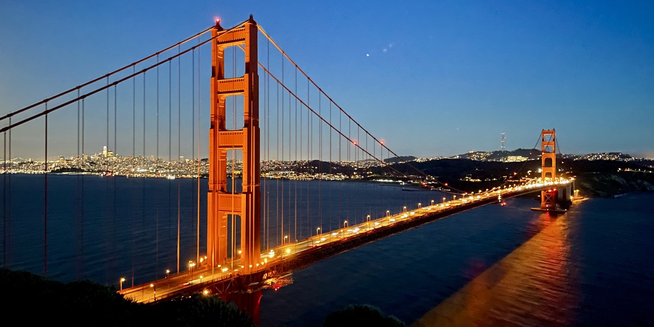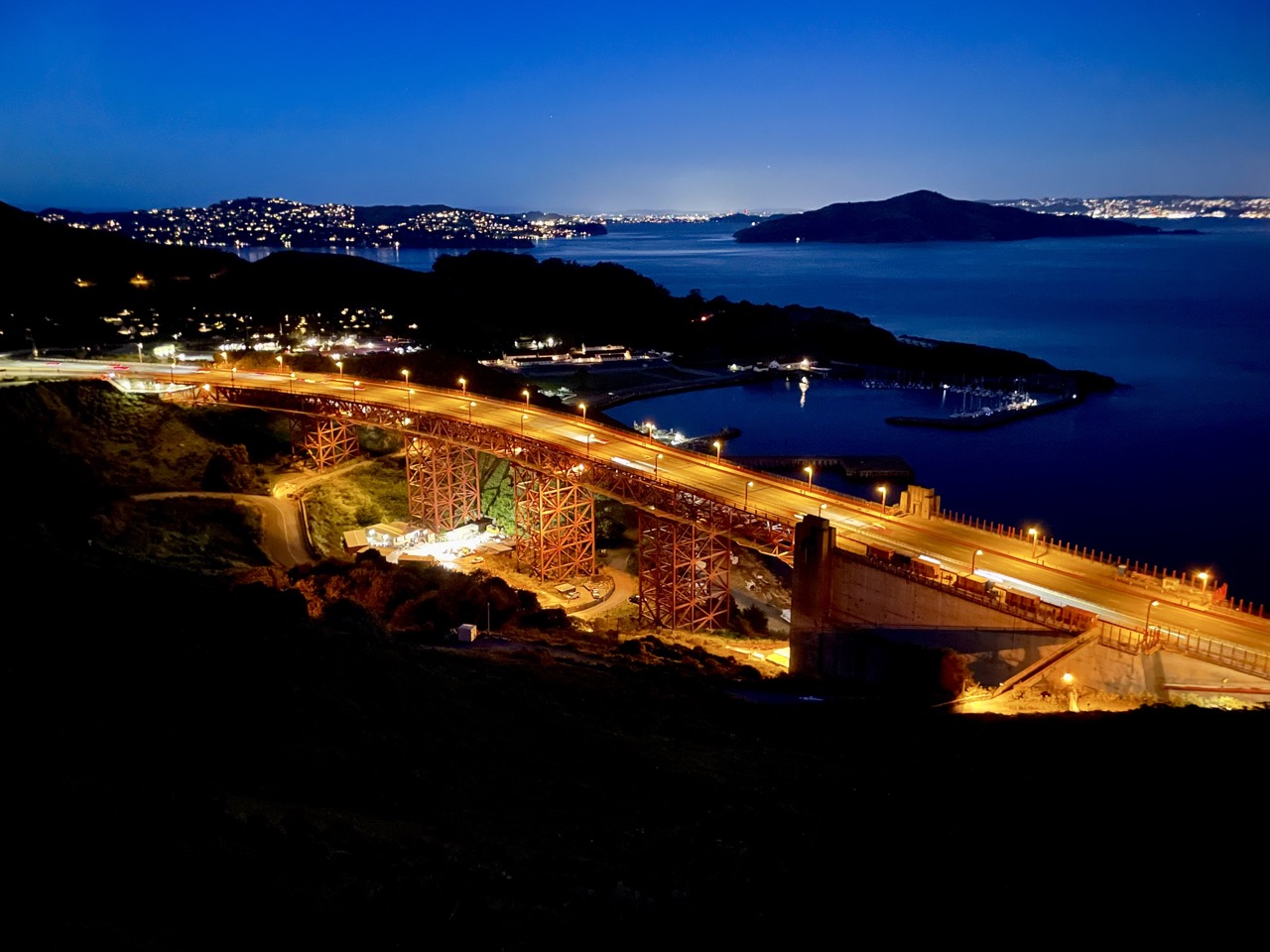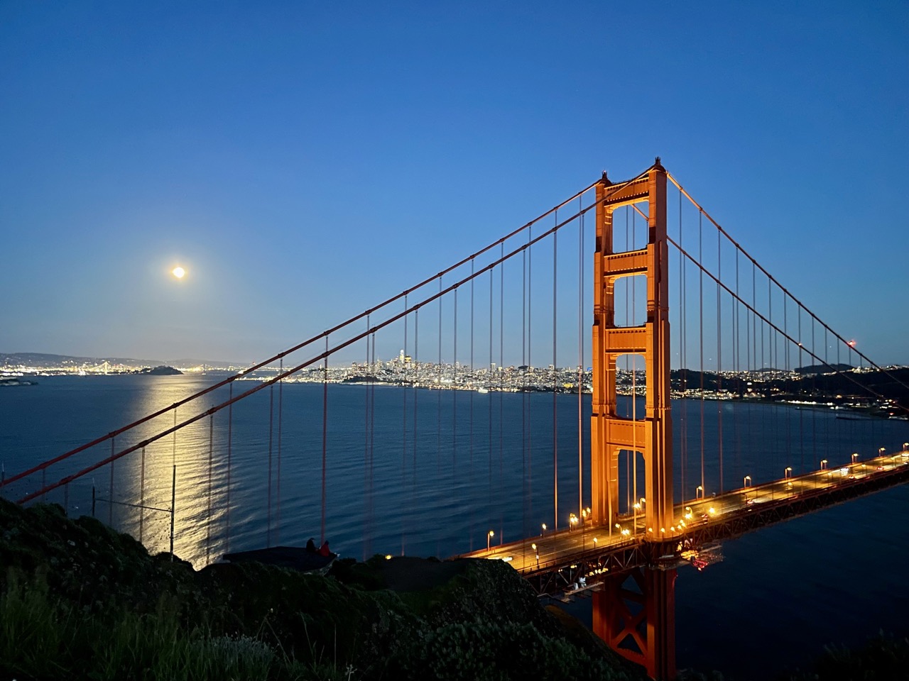 Wir haben dort noch etwas gegessen und sind dann zurück zu einem anderen Aussichtspunkt auf die Golden Gate Bridge. Mittlerweile war es Nacht geworden und der Vollmond hat uns nochmal eine ganz tolle andere Sicht auf die Stadt beschert.