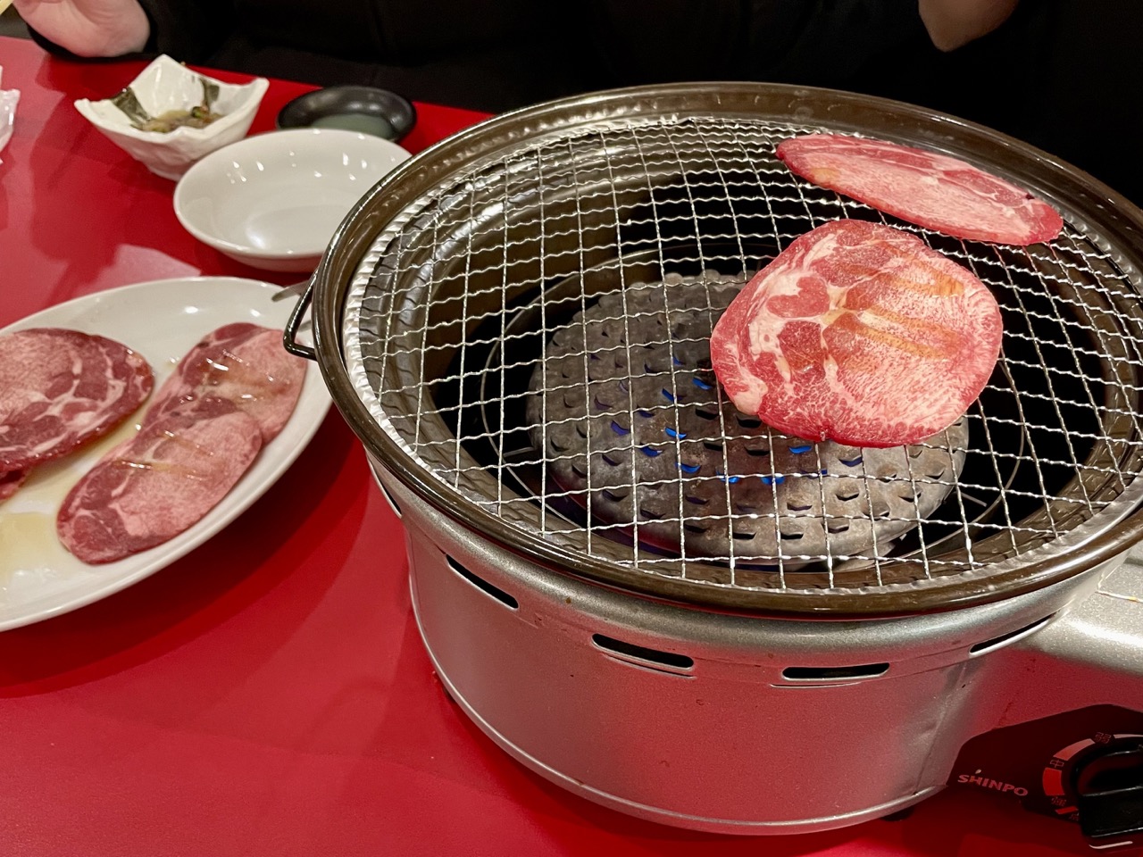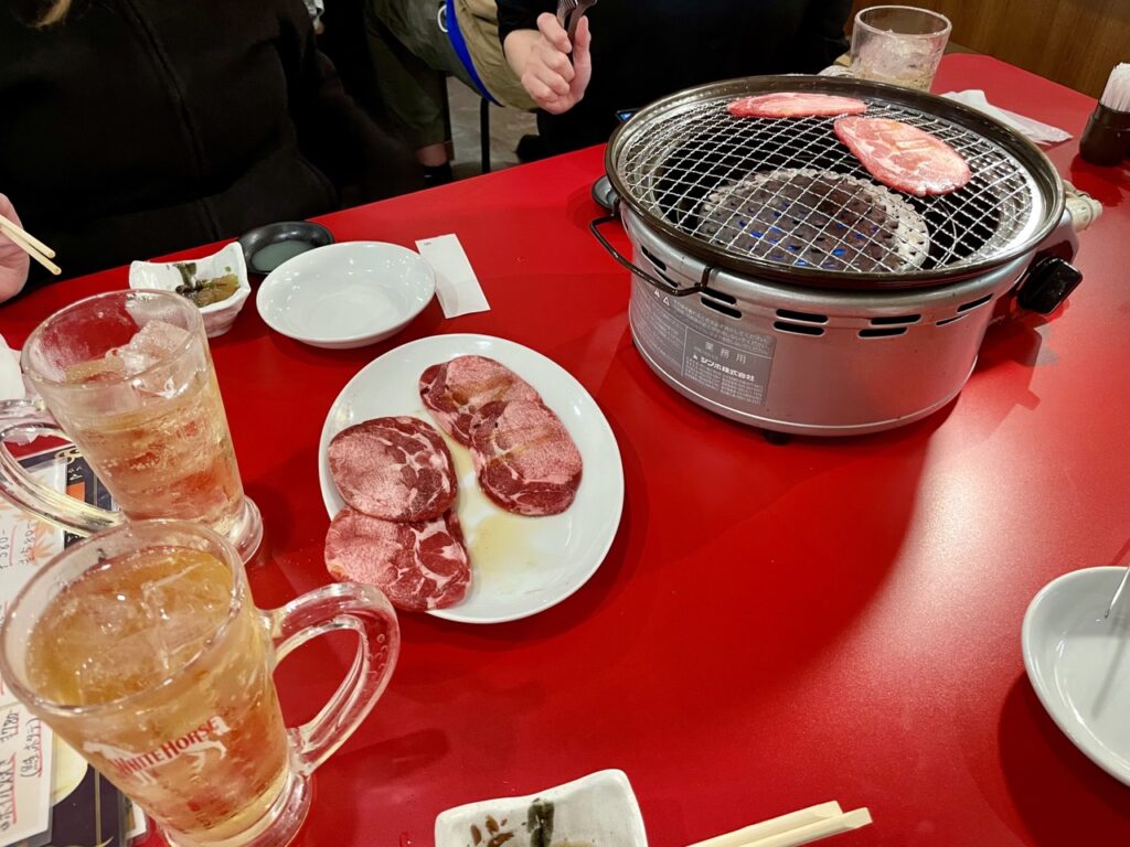 Am Abend haben wir uns mit Yumi getroffen, mit der wir zusammen Yakiniku essen waren. Das ist Fleisch, das man selbst auf einer Art Grill brät.