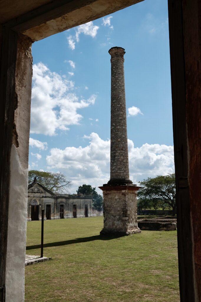 Am zweiten Tag sind wir mit dem Colectivo zur Hacienda Yaxcopoil gefahren. Das ist ein alter Landsitz aus dem 17. Jahrhundert mit Fabrik, den man besichtigen konnte. Zu seiner Hochzeit gehörten knapp 90km² Land dazu. Heute sind es nur noch knapp 3%.
