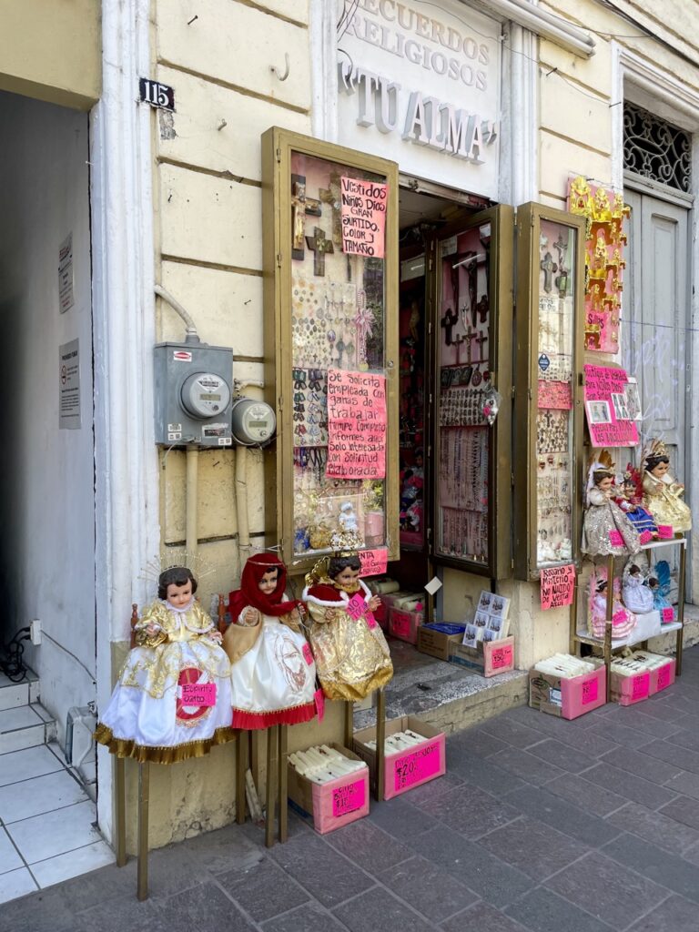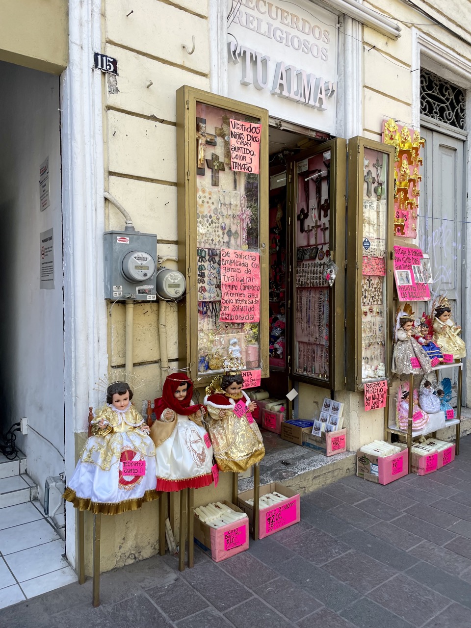 Sehr beliebt sind in Mexiko wohl Puppen – offenbar oft auch mit religiösem Hintergrund. Es gibt Spezial-Läden für Puppen genauso wie Läden, die ausschließlich Puppenkleidung verkaufen. Manchmal sahen wir sogar Chucky – Die Mörderpuppe aus der gleichnamigen Horrorfilmreihe.