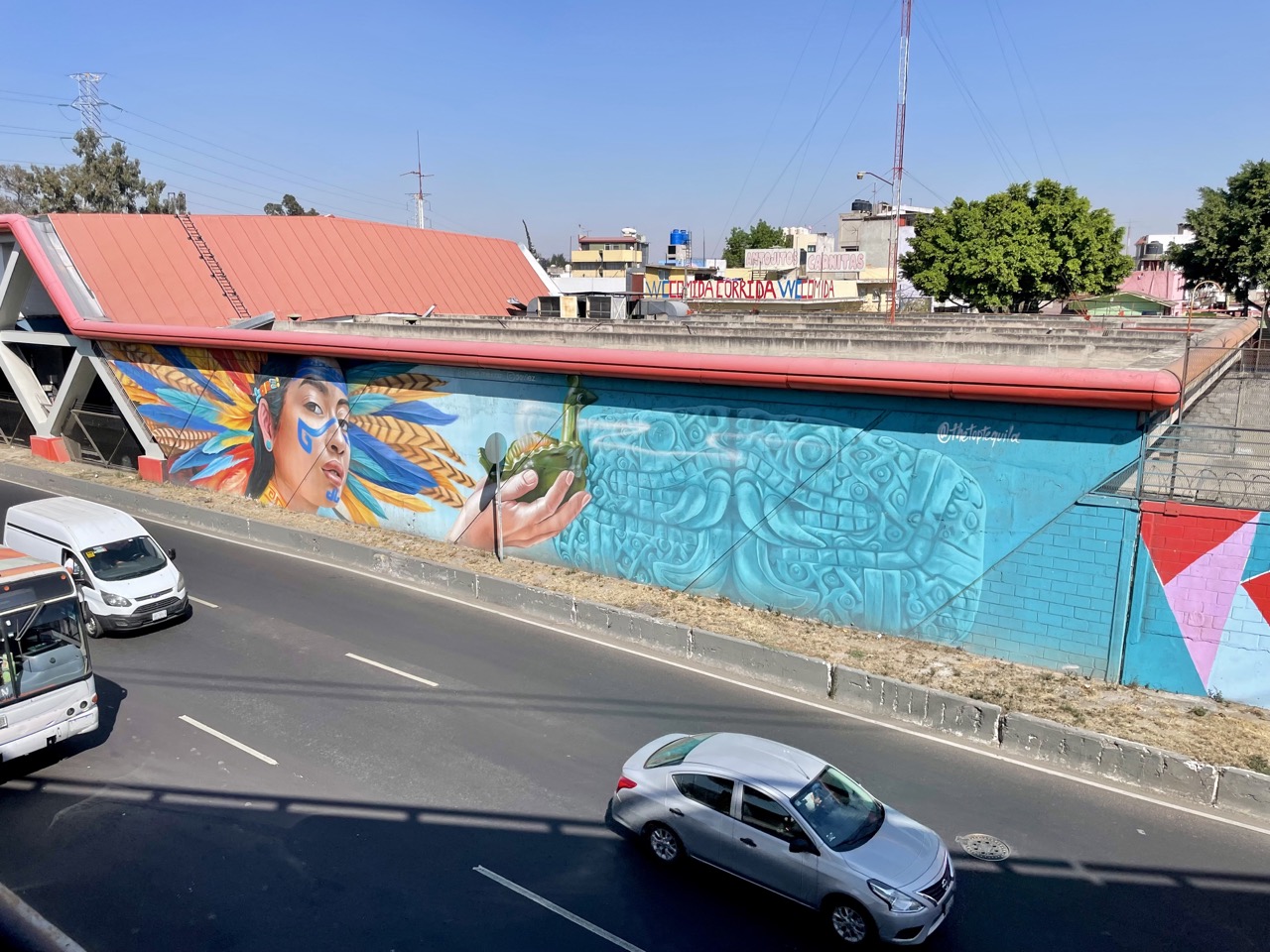 Apropos Hauswände: Es gab sehr viele Malereien an den Fassaden und Dächern. Gerade in Mexiko-Stadt waren die Dächer mit Malereien voll, aber das vor allem dort, wo die Seilbahn fährt.