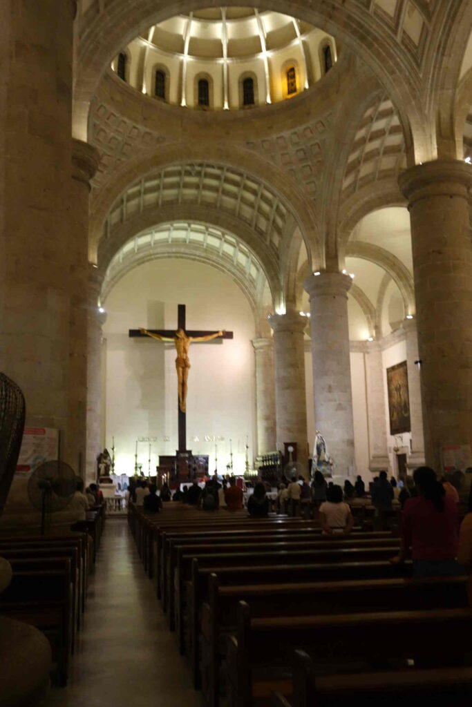Merida – alt und neuDiese Wasserhähne findet man überall im LandWir waren auf einer Verkostung von Mezcal und TequilaDas Verhältnis der Mexikaner zur Vergangenheit der spanischen Inquisition ist kompliziertVielerorts gibt es Kreuze und Heiligenfiguren, wie an diesem BusbahnhofEinmal waren wir in einem Cafe zum FrühstückIn Mexiko gab es sehr viele Hunde, manche lebten auch wild auf der StraßeNachbildung einer Hacienda in XcaretMerida – das weltweit größte Kreuz in einer Kirche
