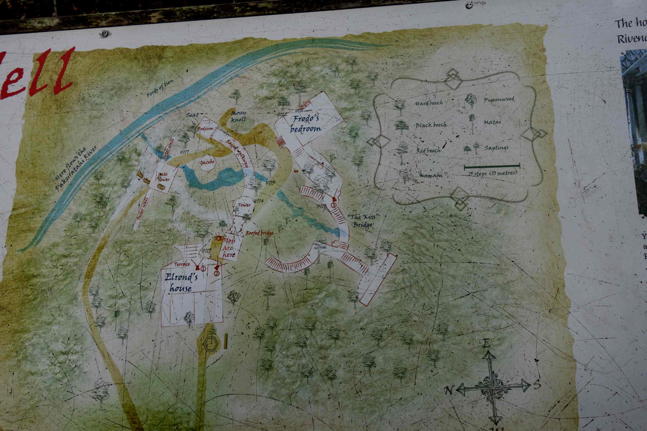 Bruchtal, also eine Stadt der Elben, war der einzige Drehort, an dem wir vor Ort wirklich Tafeln mit Infos zu den Dreharbeiten gefunden haben. Sie waren wirklich interessant und da standen viele Infos zu den Szenen, was neu konstruiert wurde, wo welcher Baum stand usw. Vieles von Bruchtal hat im Kaitoke Regional Park stattgefunden.