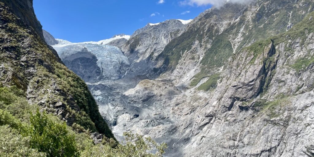 Hier wird es ein wenig schwierig. Es wurden im Film Leuchtfeuer angezündet, die von Rohan aus Gondor um Hilfe baten. Wir konnten nicht so ganz ausmachen, wo genau das passiert ist, aber es hieß, es war am Franz Josef Gletscher. Deshalb… ein Foto davon.