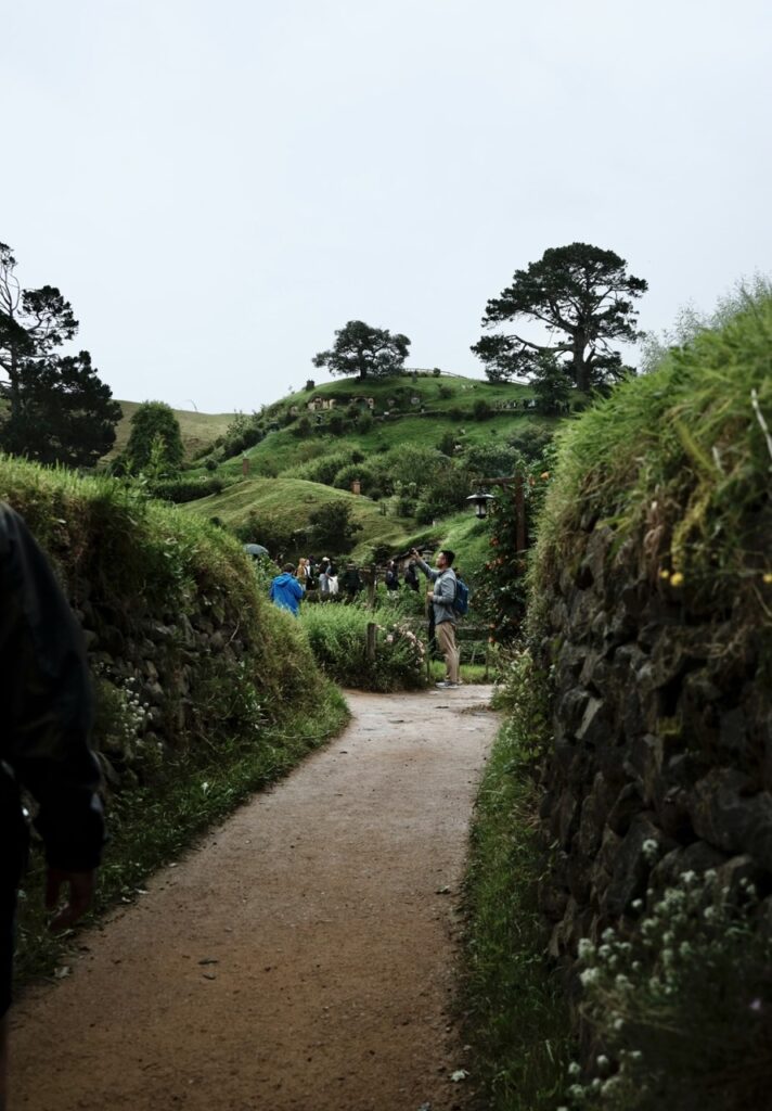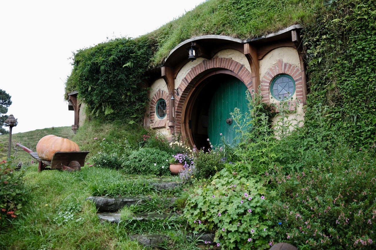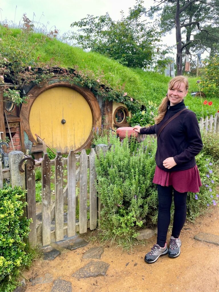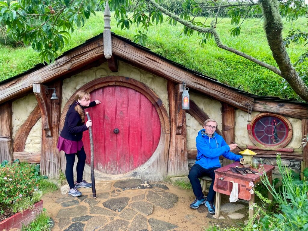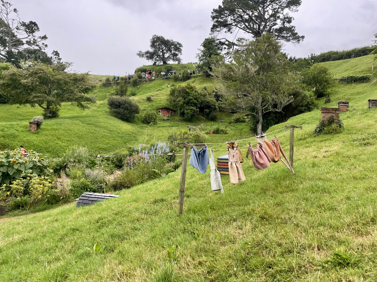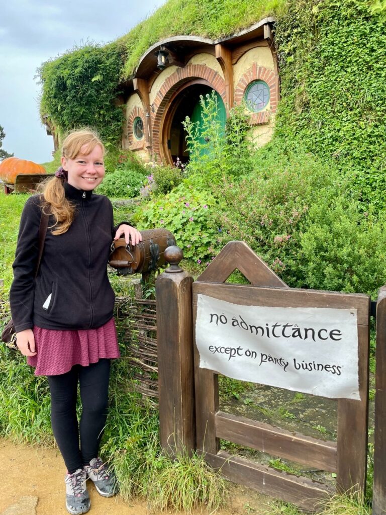 Als letztes möchten wir euch Hobbiton vorstellen. Nach den ersten drei Herr der Ringe Filmen wurde das Set um „the Shire“, also das Auenland“, fast komplett wieder abgerissen und das ursprüngliche Farmland blieb zurück. Als „der Hobbit“ dann gedreht wurde, wurde alles wieder neu hergestellt. Heute könnt ihr das Auenland besuchen! Und wir müssen sagen, wir haben es nicht bereut. Die 54 Euro pro Tour klangen anfangs ein wenig viel, aber nachdem wir da gewesen sind, war es das wirklich wert. Man hatte genug Zeit, um alles genau zu betrachten, Fotos zu machen, ein Bier aus dem Auenland zu trinken und und und. Es gab viele spannende Infos zu den Drehtagen und es war wirklich ein Stück Jugend, die wir dort besucht haben.
