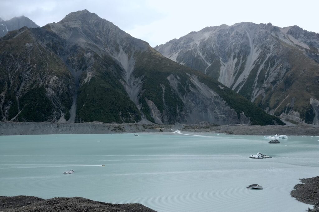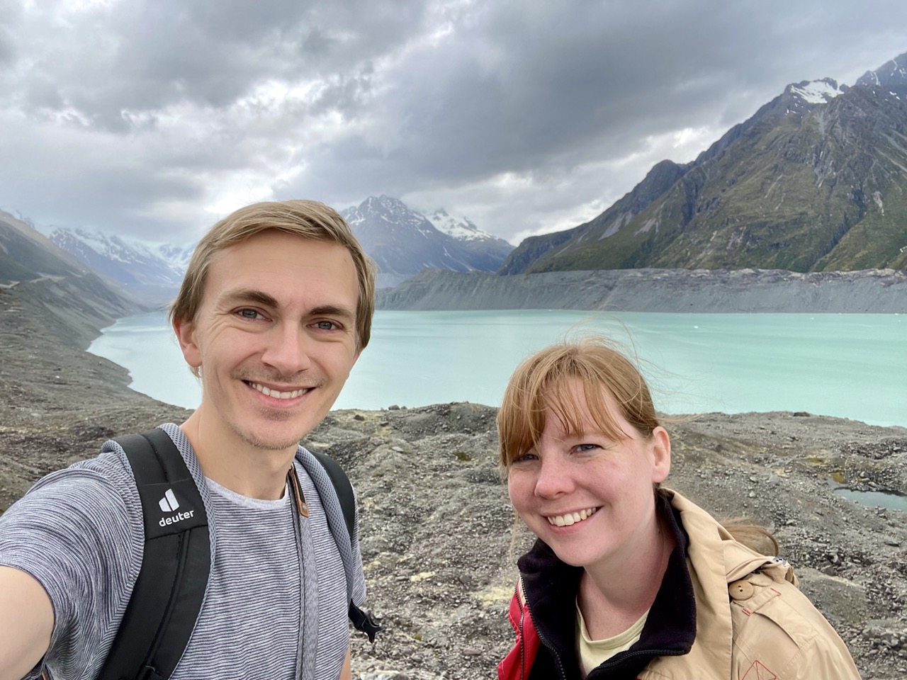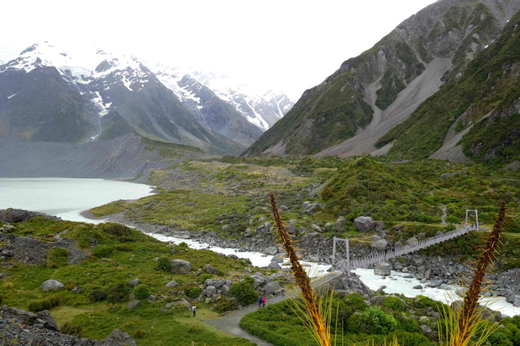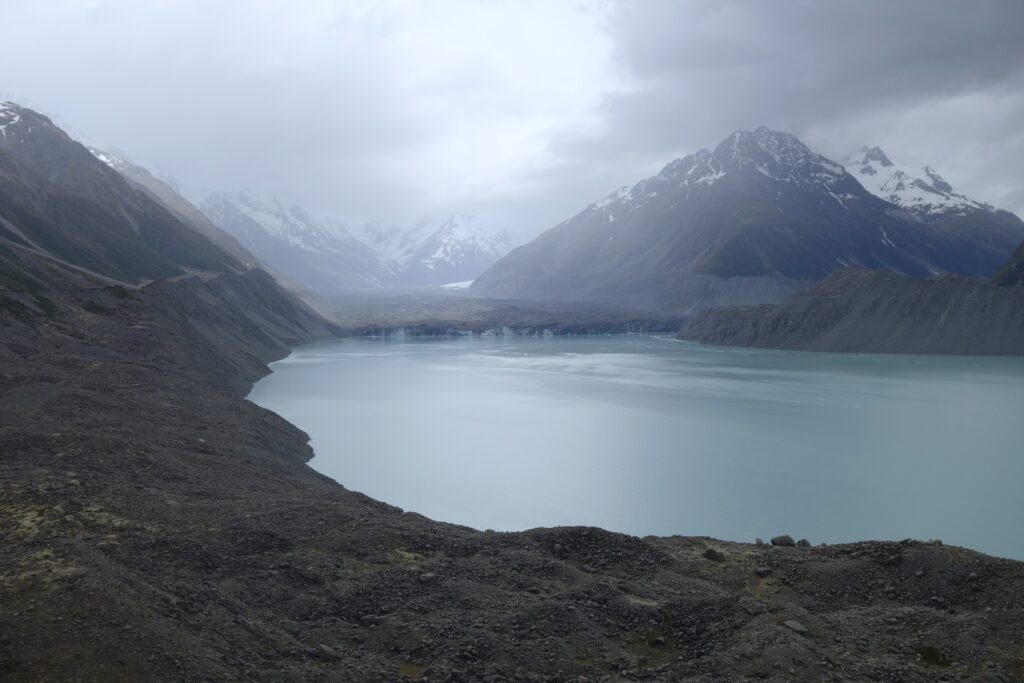 Nach Lake Tekapo haben wir uns einen Tag in der Region um den höchsten Berg Neuseelands, Mount Cook, aufgehalten. Dort gab es eine tolle Landschaft mit dem Hookersee und dem Hooker-Gletscher. Eigentlich sind wir dort auch nur hin, weil wir in unserer Unterkunft ein Mädchen kennen gelernt haben, die uns das empfohlen hat. Den Mount Cook selbst haben wir aber aufgrund des schlechten Wetters gar nicht gesehen…