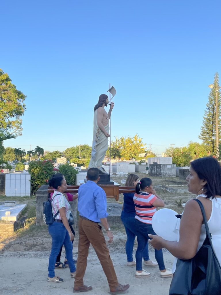 Es kam so, dass wir Liberia am Mittag des Ostersonntag erreicht haben. Nach einem für uns recht sinnlosen dreistündigen Mitternachtsflug nach Minnesota, durften wir uns in den Flieger nach Costa Rica setzen, der nochmal ca. fünf Stunden gedauert hat. Wirklich schlafen war auf beiden Flügen ein wenig schwierig (Zumindest für mich. Chris hat sogar den Start verschlafen!), also sind wir ein wenig geschafft in unserem Hostel in Liberia angekommen. Wir hatten allerdings schon in den USA rausgefunden, dass es ganz in unserer Nähe eine Ostermesse mit Umzug gab. Also sind wir um 16 Uhr dorthin. Dass die Messe 1 ½ Stunden geht und wir kaum bis gar nicht geschlafen hatten, ist uns erst dort auf- bzw. wieder eingefallen. Trotzdem haben wir uns durchgekämpft, wurden mit Weihwasser beträufelt und haben dann die Prozession vom Friedhof ein Stück mitgemacht! Als wir an der Abbiegung zu unserem Hostel vorbeigekommen sind, haben wir die Gelegenheit allerdings genutzt und haben uns heimlich aus dem Staub gemacht.