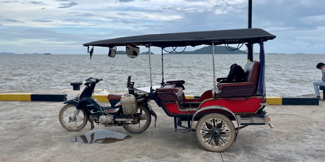Mit dem Zug ging es noch bis zur letzten Station nach Sihanoukville, von wo aus wir mit der Fähre über eine recht aufgewühlte See gefahren…