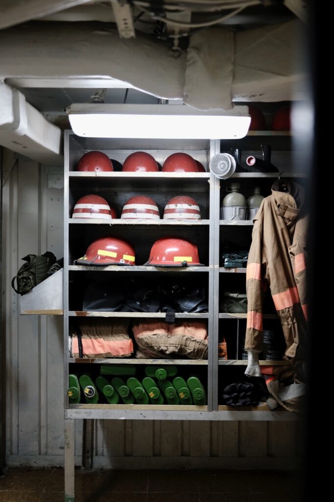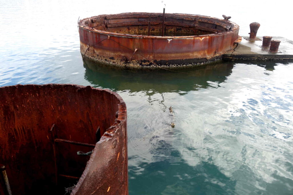 Weil das Schiff im Hafen untergegangen ist, sieht man von oben noch Teile des Decks und kann auch ein kleines Stück in das Schiff hineinsehen (auch wenn die Dunkelheit sehr schnell jede Sicht schluckt).
