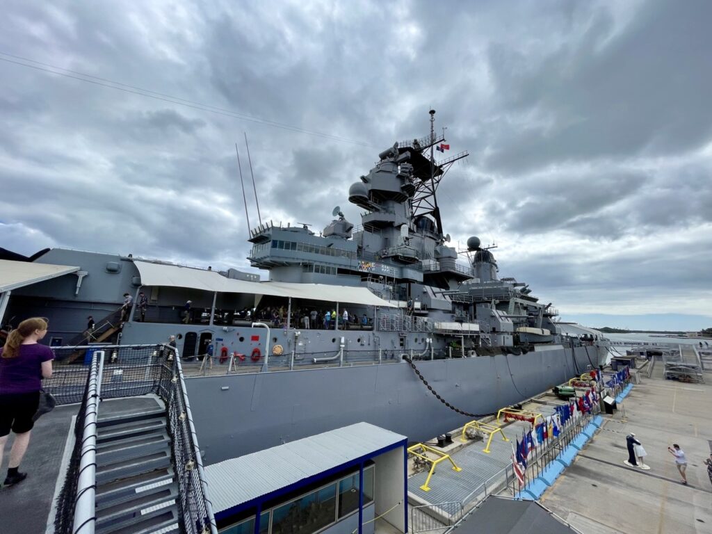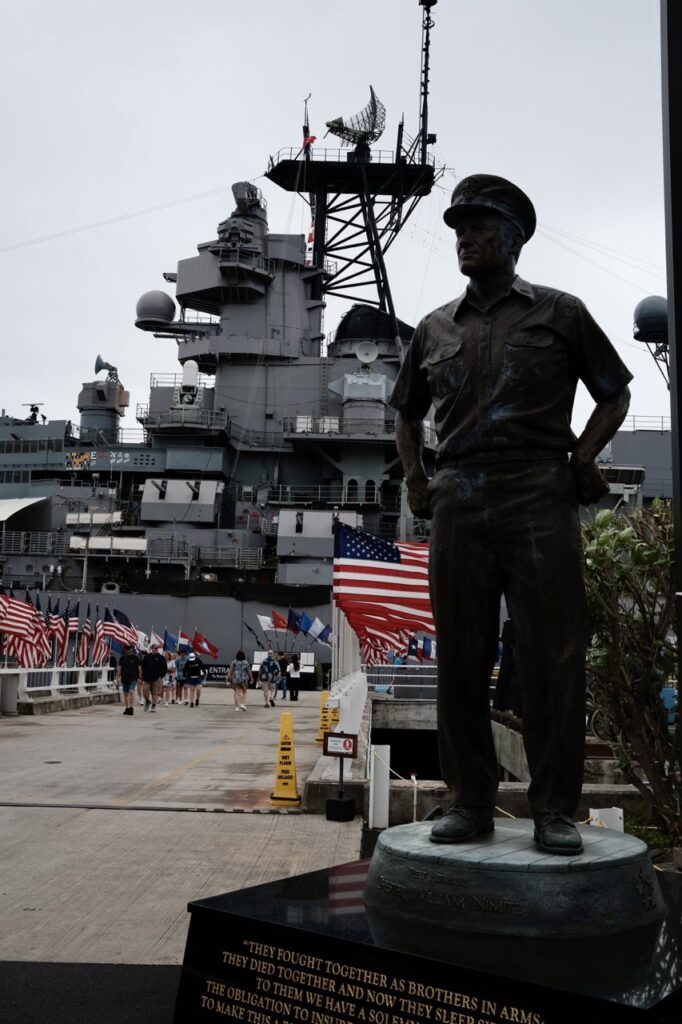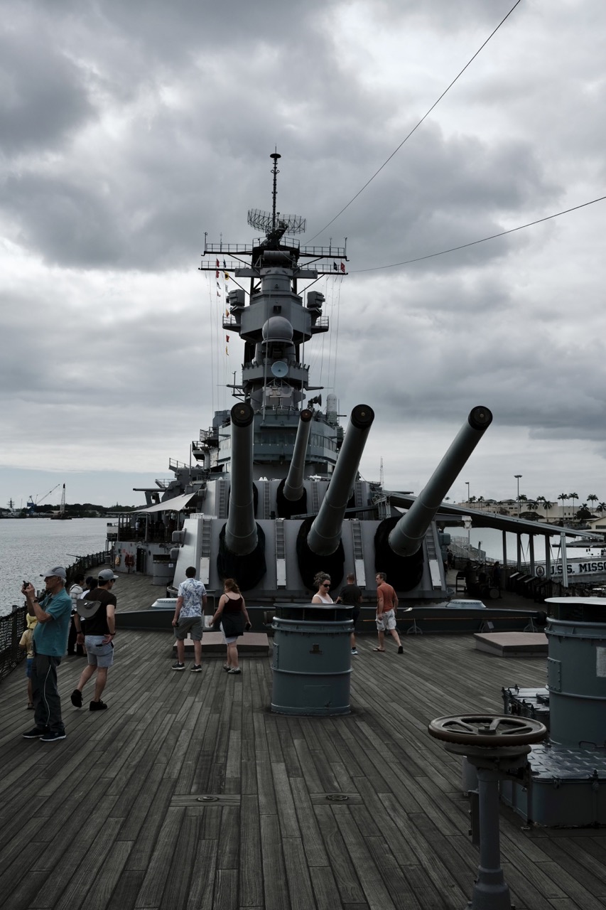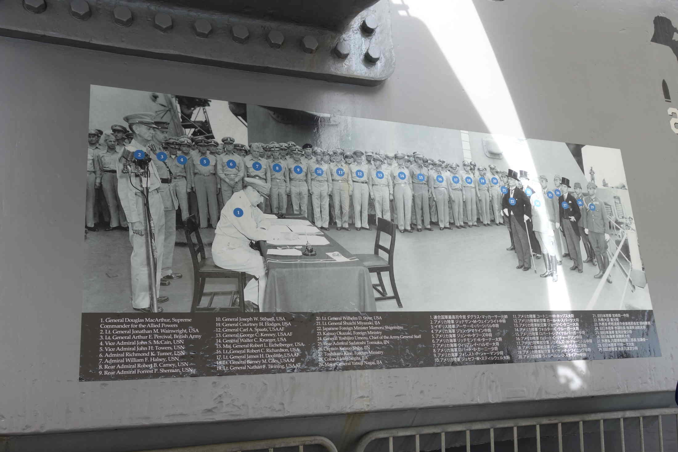 Als letztes haben wir das Kriegsschiff USS Missouri besucht, auf dem am 2.9.1945 die bedingungslose Kapitulation der Japaner unterzeichnet worden war und somit der zweite Weltkrieg beendet wurde. Wir konnten durch das Schiff gehen, die Schauplätze betrachten, die Kabinen, Aufenthaltsräume und und und. Natürlich auch das Deck, wo die Kapitulation unterzeichnet worden war, und die Stelle, wo ein Kamikaze-Flieger das Schiff getroffen hat. Uns hat die USS Missouri von der Art der Ausstellung besser gefallen, da alles sachlicher und (soweit eben möglich…) neutraler dargestellt wurde als bei der US Bowfin. Auch gab es einen Bereich über die japanischen Angreifer, vor allem die Kamikaze-Flieger, und wie sie sich auf ihren letzten Einsatz vorbereitet hatten.