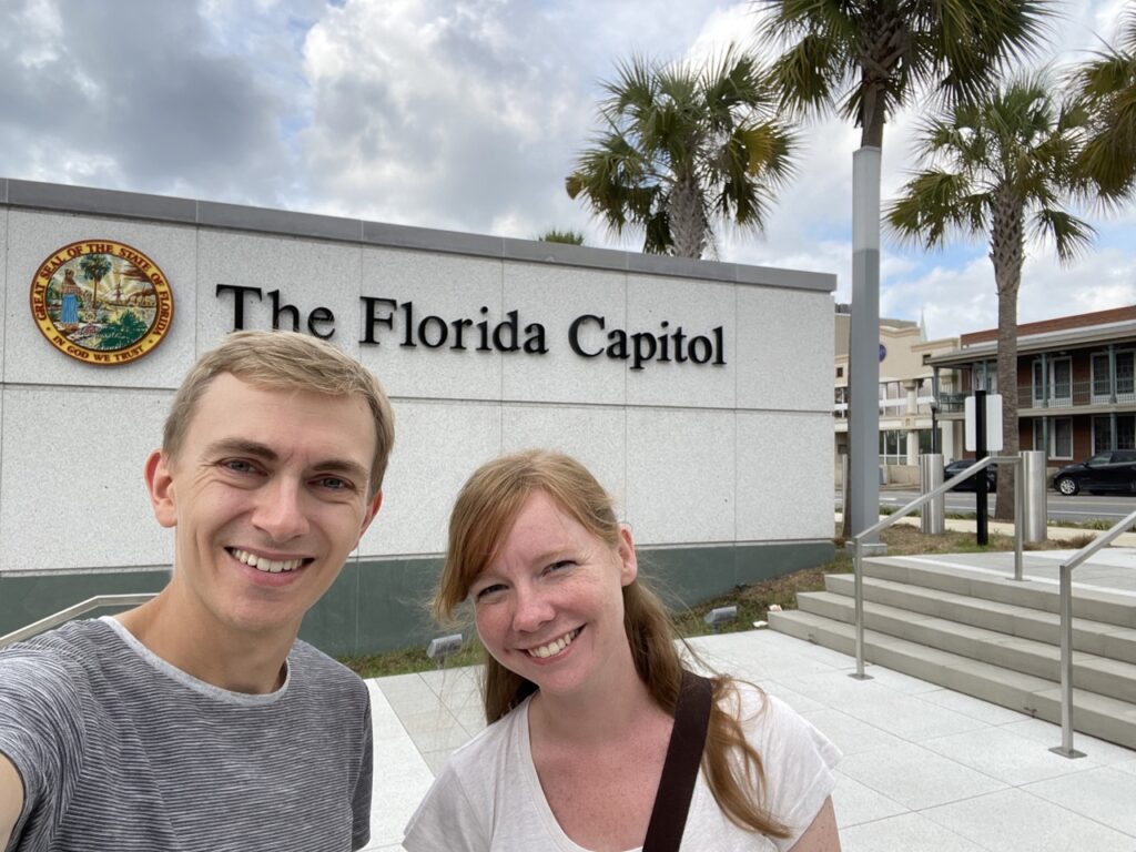 Wusstet ihr, dass Tallahassee die Hauptstadt von Florida ist? Im Grunde wurde die Stadt im Jahr 1824 in der Mitte zwischen Saint Augustine und Pensacola gegründet, weil man sich bei der Suche nach einer neuen Hauptstadt nicht für eine der beiden entscheiden konnte. Es gibt in Tallahassee ein altes und ein neues Capitol. Wir haben uns das Alte von innen angesehen und dafür auch einen Zettel mit den historischen Infos auf Deutsch(!) bekommen.
