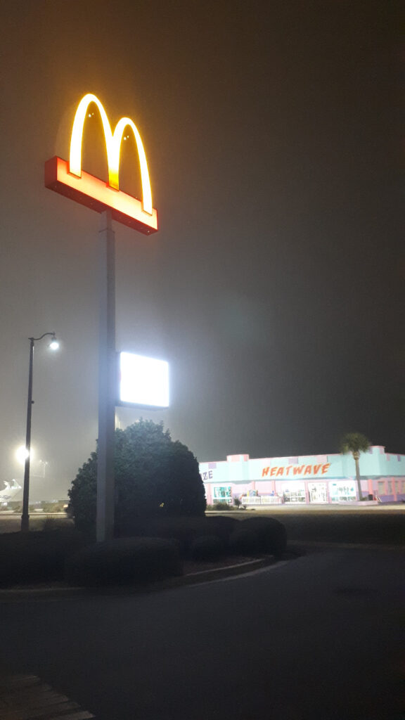 Auf dem Weg zu unserer Übernachtung sind wir gehörig in den Nebel gekommen, aber um ehrlich zu sein… war der kleine Teil von Panama City Beach perfekt für ein paar Fotos!