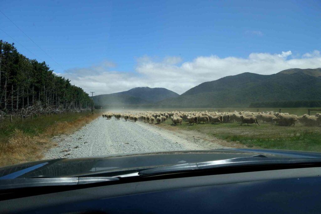 In der Nacht haben wir dort in der Nähe auf einem Campingplatz geschlafen und sind mit tollem Blick aufgewacht. Die so genannte „Sandfly“ hat uns allerdings ziemlich geärgert. Man musste nur einmal die Autotür für ein paar Sekunden offen haben und hatte bestimmt 30 davon im Auto. Und sie stechen.