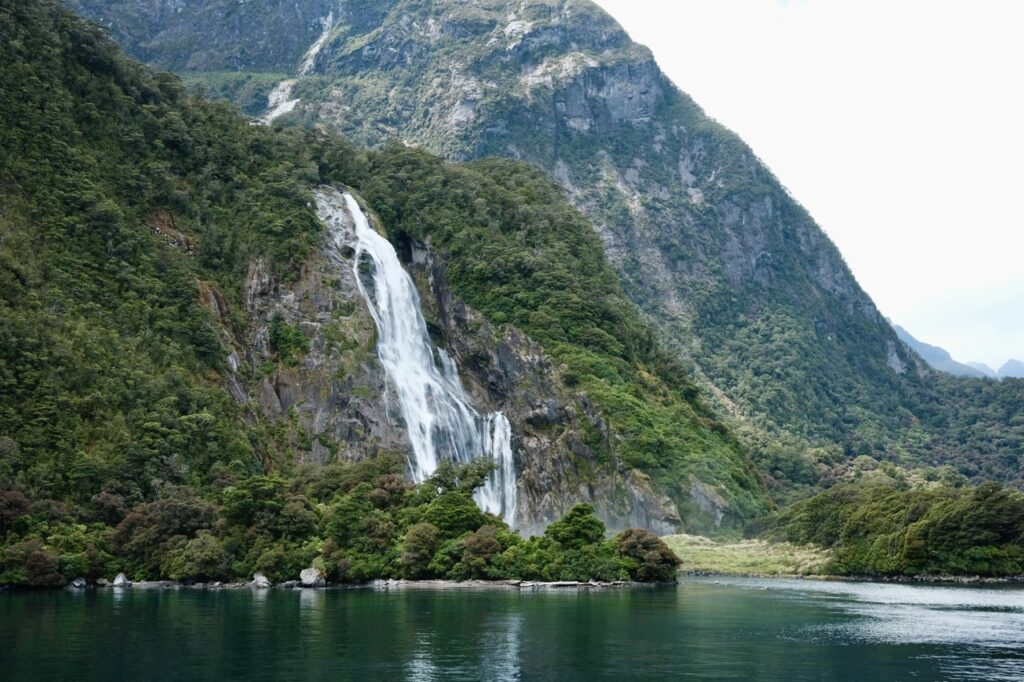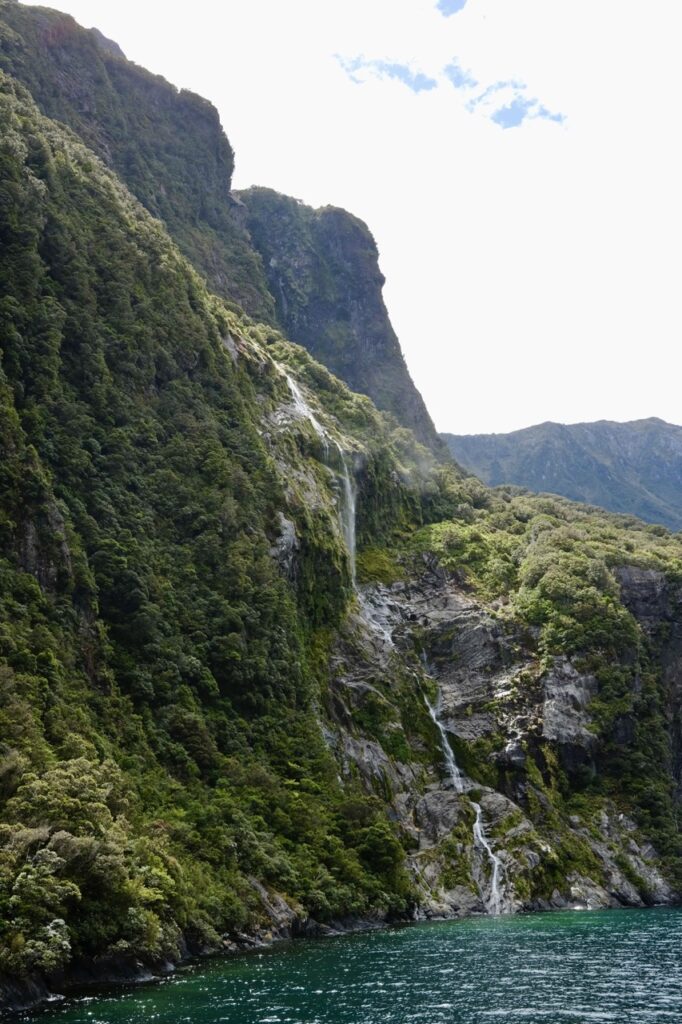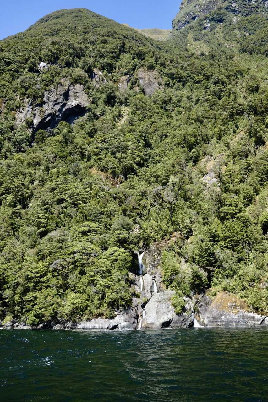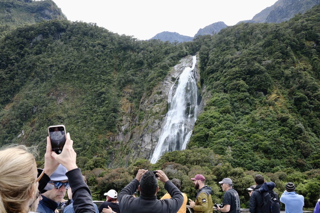 Es heißt, Milford Sound wäre bei Regen schöner als bei Sonnenschein, weil die Wasserfälle dann viel beeindruckender sind. Und bei 200 Regentagen im Jahr stehen die Chancen nicht schlecht. Wir hatten allerdings „Pech“ und wunderschönen Sonnenschein.