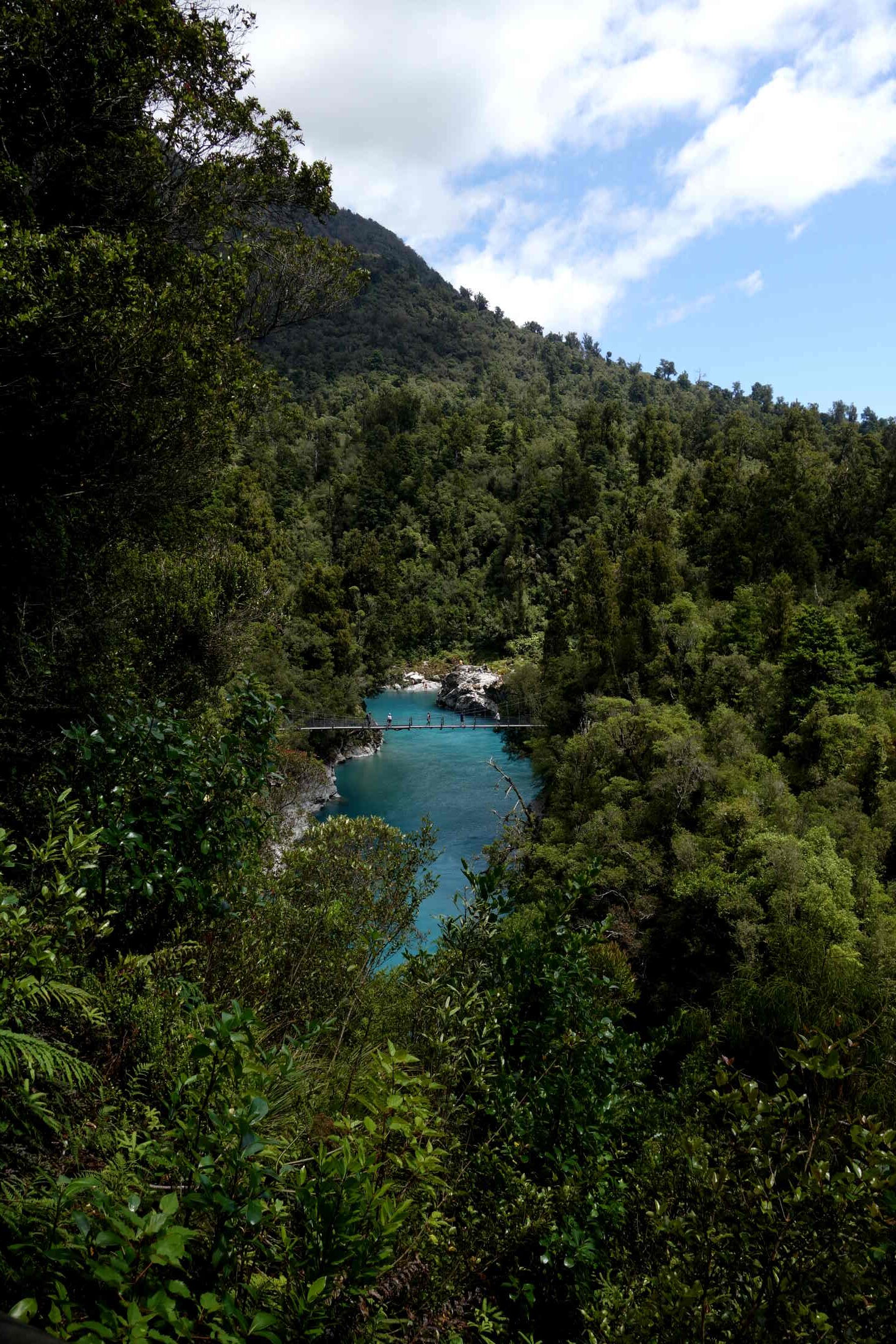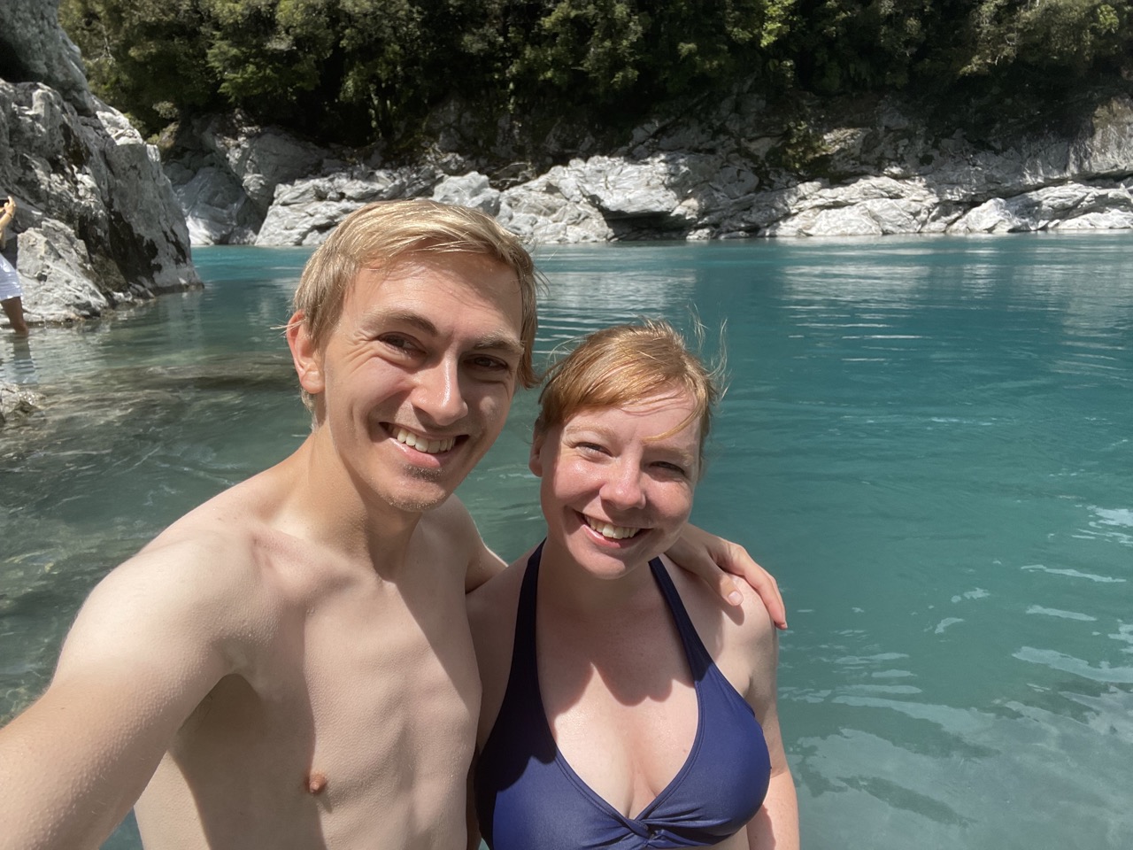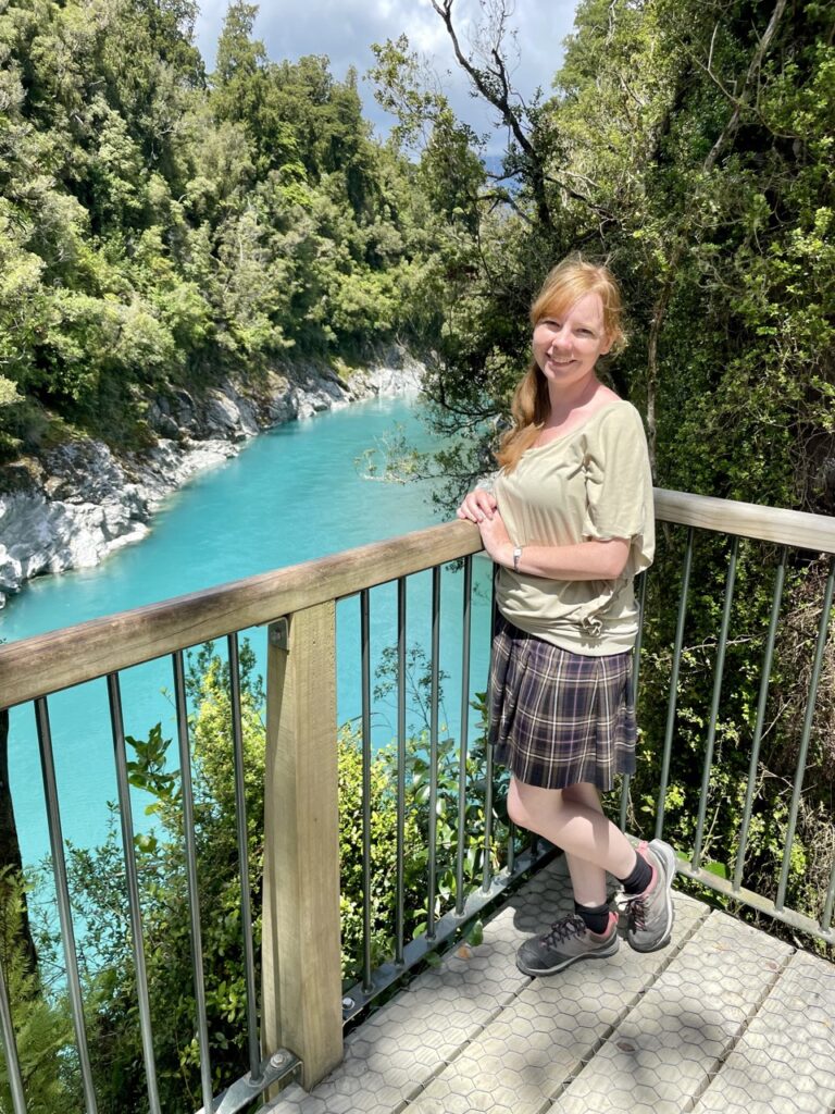 Ein sehr erwähnenswerter Stopp war in Hokitika. Zuerst waren wir ein wenig dort am Strand, aber das wirkliche Herzstück für uns war Hokitika Gorge. Dort gab es einen kleinen Rundweg und als wir damit fertig waren, konnten wir es uns nicht nehmen lassen, in das wunderschöne blaue (und wirklich kalte) Wasser einzutauchen.