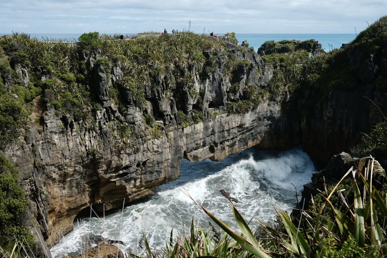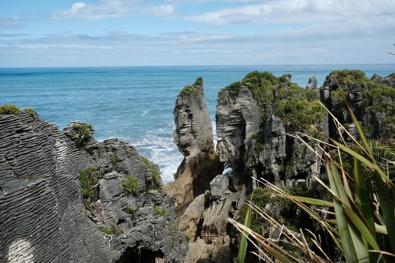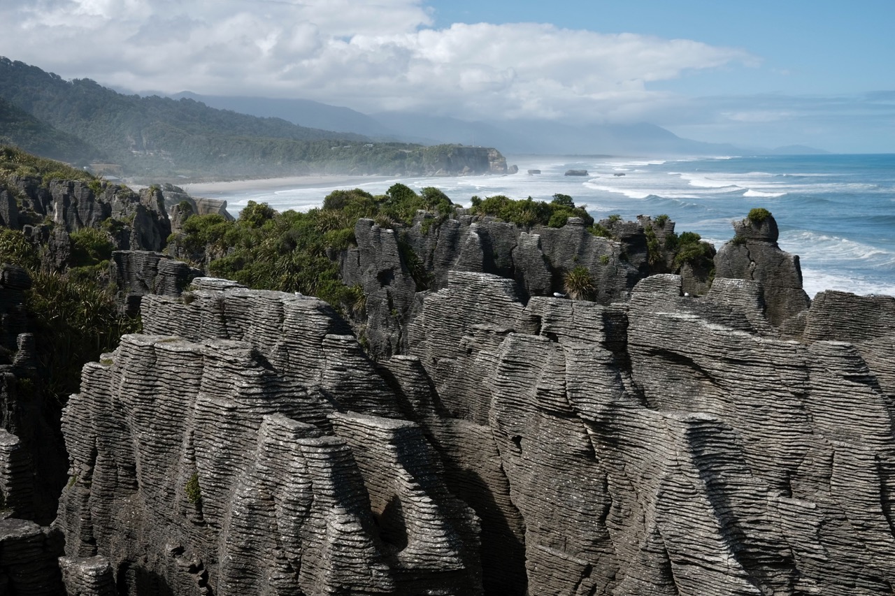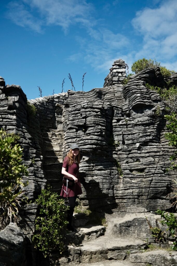 Auf dem Weg nach Nelson sind wir dann noch an den Punakaiki Pancake Rocks vorbeigekommen. Die Felsen haben die Form von übereinander geschichteten Pfannkuchen. Das Ganze ist vor rund 30 Million Jahren durch Ablagerungen entstanden, als die Felsen noch unter der Wasseroberfläche waren. Wind und Wellen tragen jetzt allerdings immer mehr vom Stein ab.