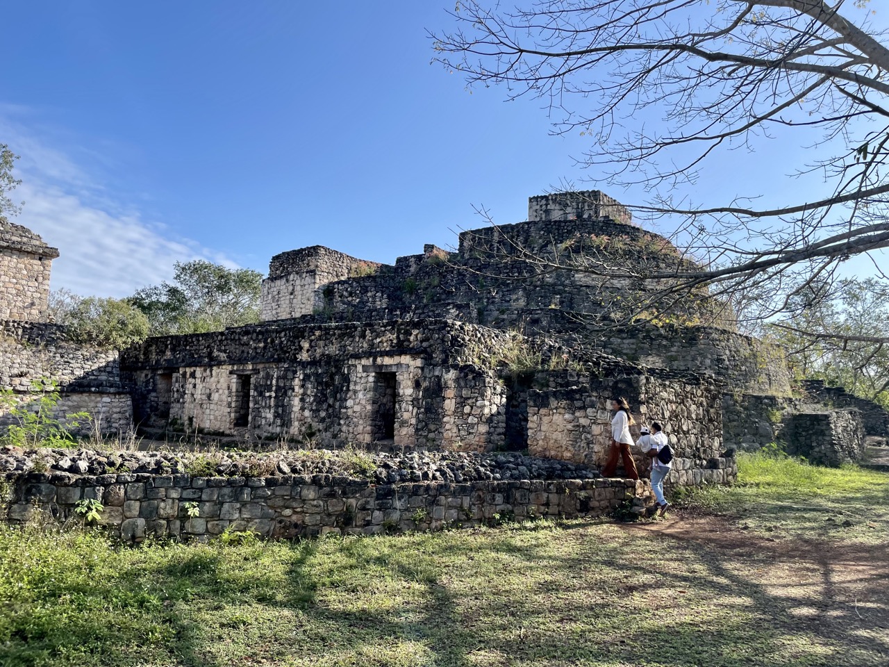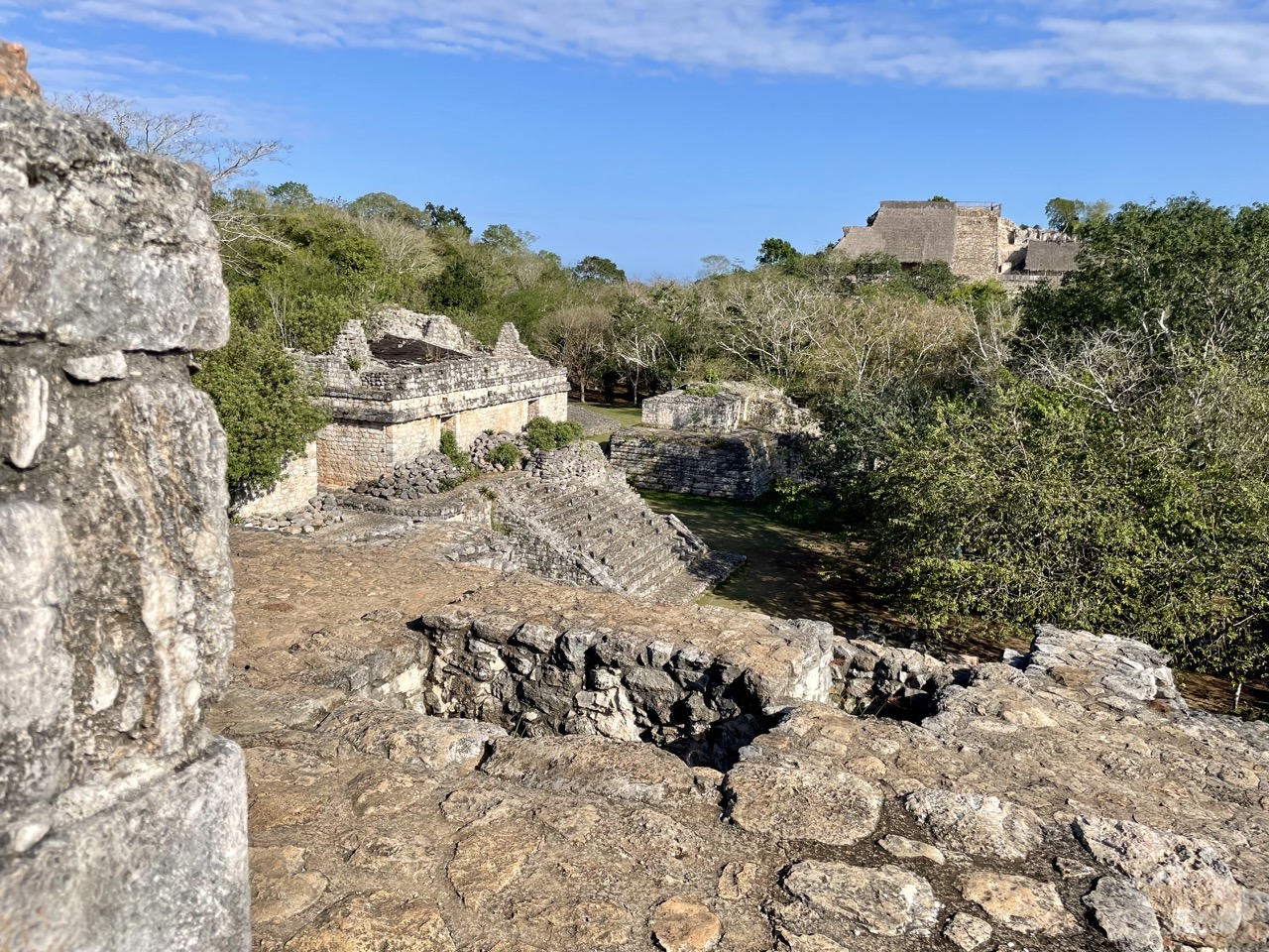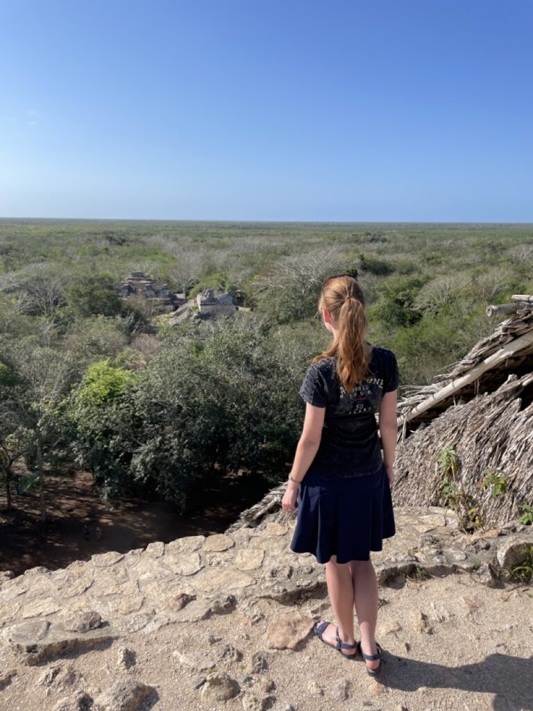 Am nächsten Morgen haben wir uns noch auf den Weg nach Ek Balam gemacht, was uns im Hostel empfohlen wurde. Das ist ebenfalls eine alte Maya-Stätte – allerdings eine der wirklich wenigen auf Yukatan, bei der man noch auf eine Pyramide hoch darf und einen atemberaubenden Überblick über das Gebiet hat. Man konnte sogar bis zu anderen Pyramiden sehen. Da wir recht früh morgens da waren, kurz nachdem sie aufgemacht hatten, waren auch sehr wenige Touristen da und die Atmosphäre war dadurch nochmal eine ganz andere.