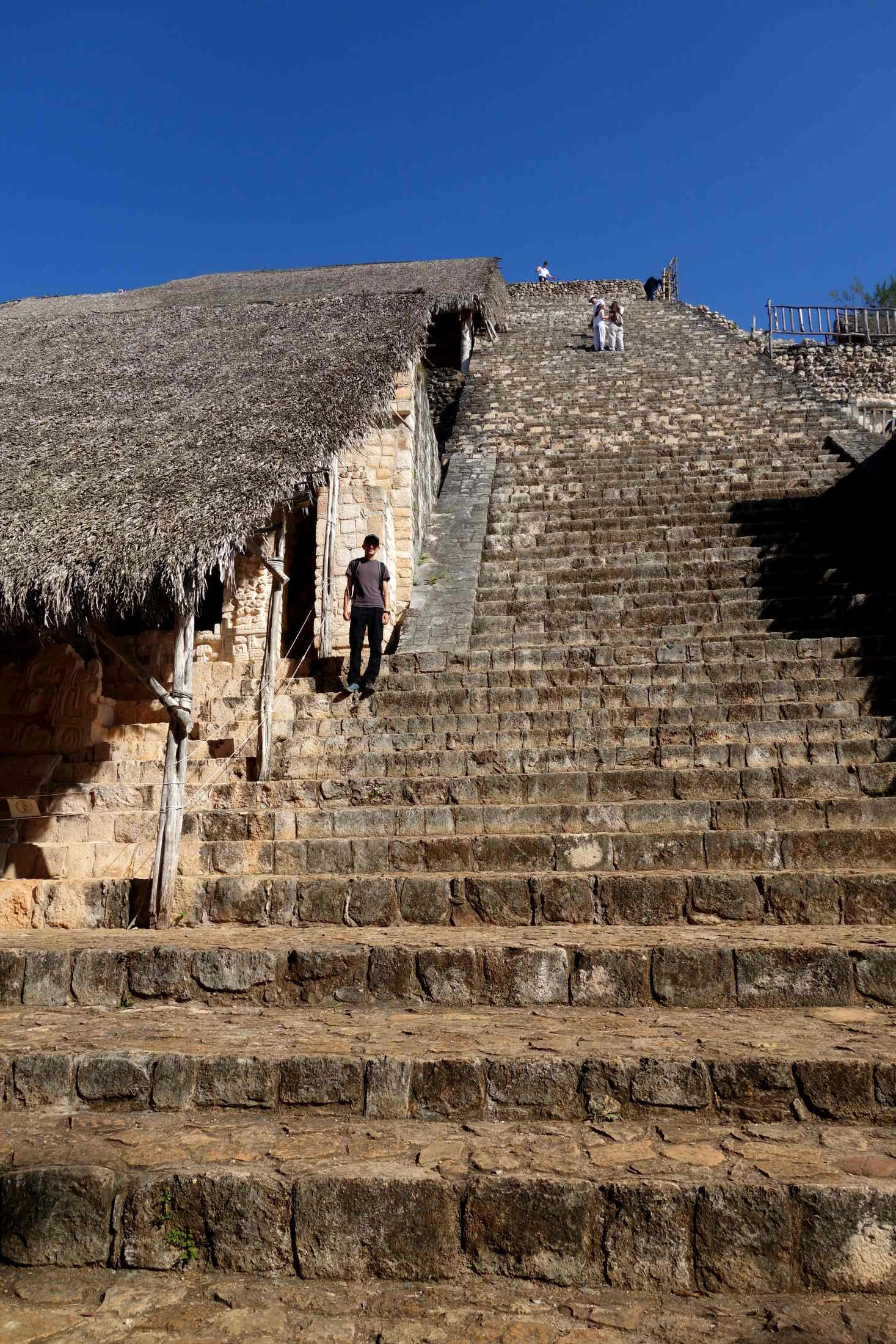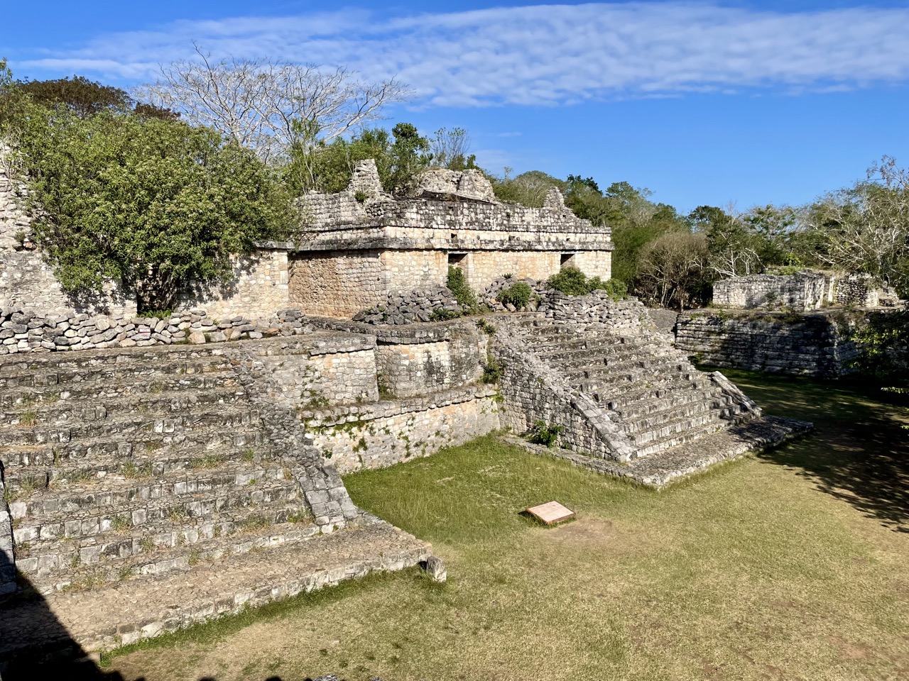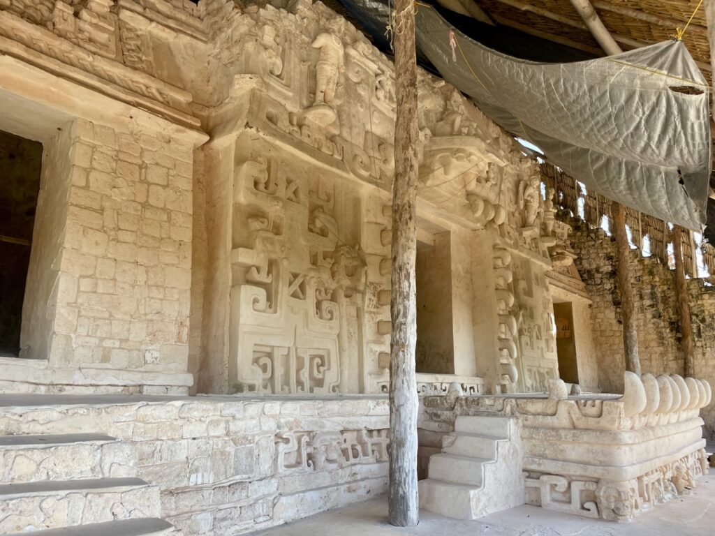Am nächsten Morgen haben wir uns noch auf den Weg nach Ek Balam gemacht, was uns im Hostel empfohlen wurde. Das ist ebenfalls eine alte Maya-Stätte – allerdings eine der wirklich wenigen auf Yukatan, bei der man noch auf eine Pyramide hoch darf und einen atemberaubenden Überblick über das Gebiet hat. Man konnte sogar bis zu anderen Pyramiden sehen. Da wir recht früh morgens da waren, kurz nachdem sie aufgemacht hatten, waren auch sehr wenige Touristen da und die Atmosphäre war dadurch nochmal eine ganz andere.