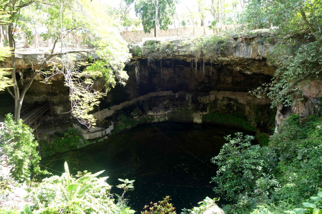Cenotes entstehen in Karstgebieten. Durch die Auflösung des Kalkgesteins bilden sich Höhlen und unterirdische Wasserläufe. Bricht die Decke einer solchen Höhle ein, so entsteht eine Tagöffnung, die bis zum Grundwasser reichen kann. Die Maya betrachteten diese Bildungen als Eingänge zur Unterwelt und nutzten sie häufig als religiöse Opferstätten. Die gewaltigen Höhlen galten als Sitz von Göttern der Unterwelt.