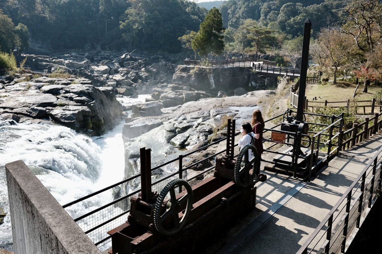 Der Grund, warum wir überhaupt in Kumamoto geschlafen haben war der, dass wir am nächsten Tag morgens recht früh los in Richtung Kagoshima wollten. Da Yumi nur von Mittwoch bis Freitag frei bekommen konnte (das sind 3 von den 5 Tagen, die sie im Jahr normalerweise frei nimmt!), wollten wir den Mittwoch nutzen. Zuerst ging die Fahrt mit ihrem Auto in den Kusumotogawakeiryu Nationalpark. Dort haben wir uns den Sogi-Wasserfall, die „japanischen Niagarafälle“, angesehen bei Okuchimiyahito, Isa.