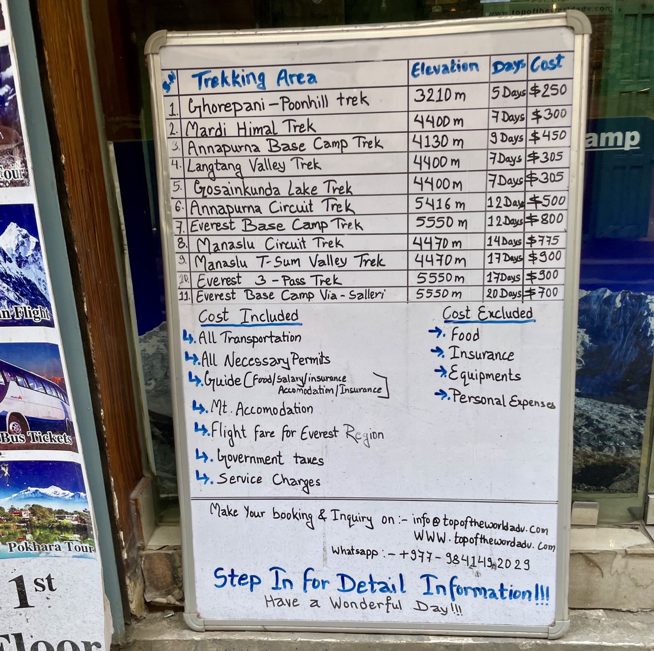 Wir haben in Kathmandu auf Schildern diese Tour ebenfalls angeboten gesehen, allerdings für rund 250 Euro.