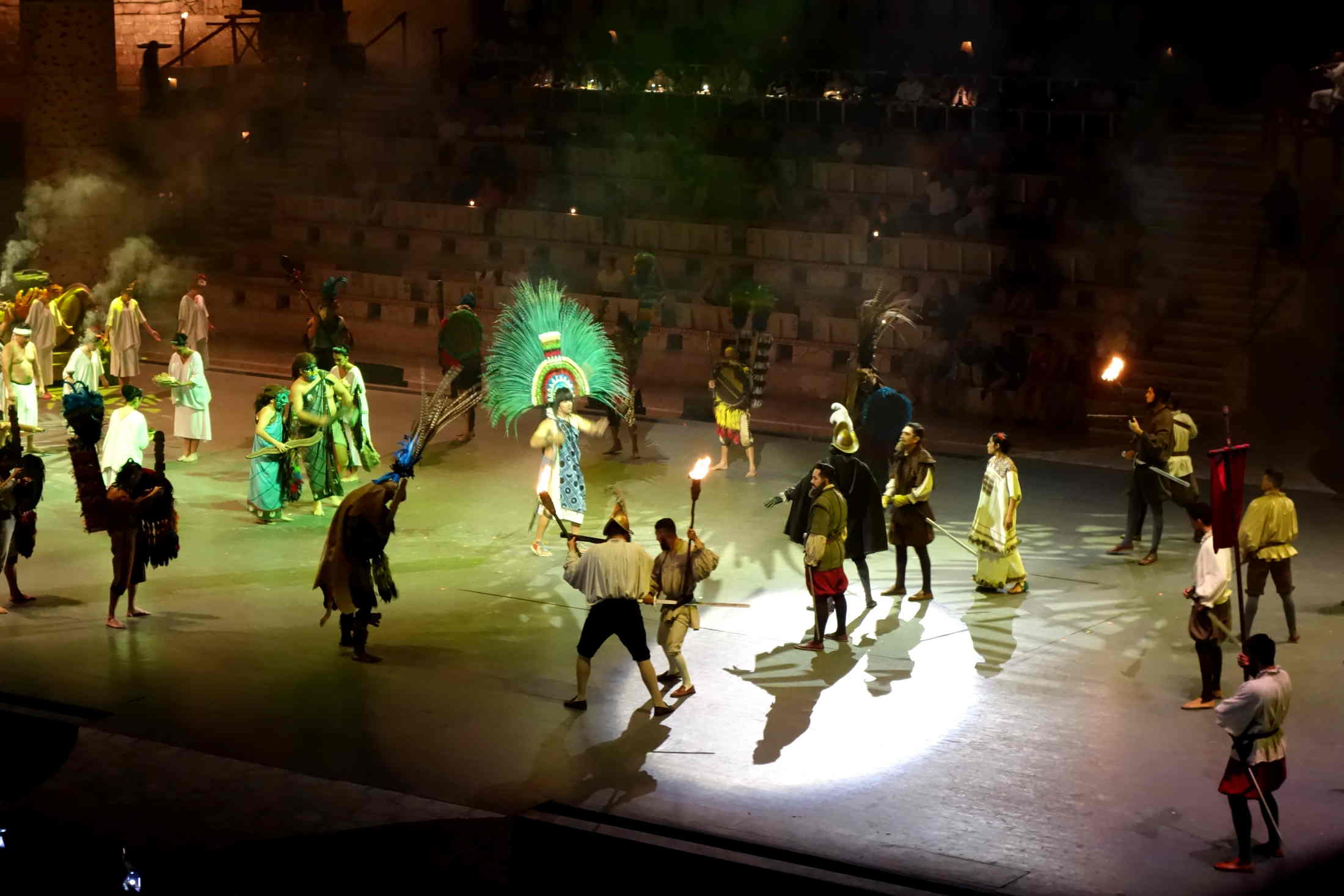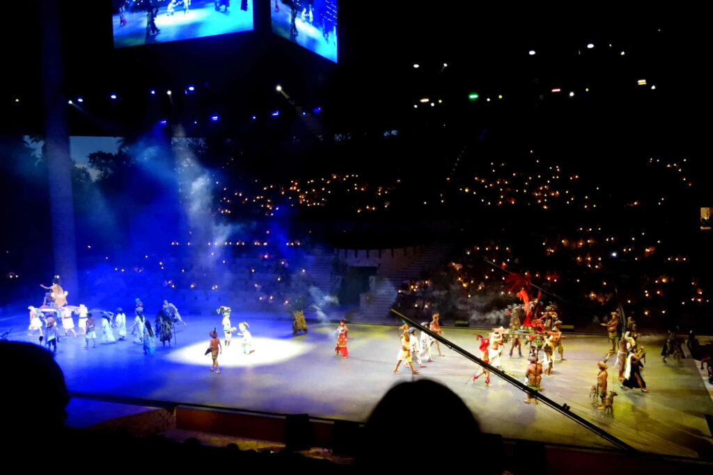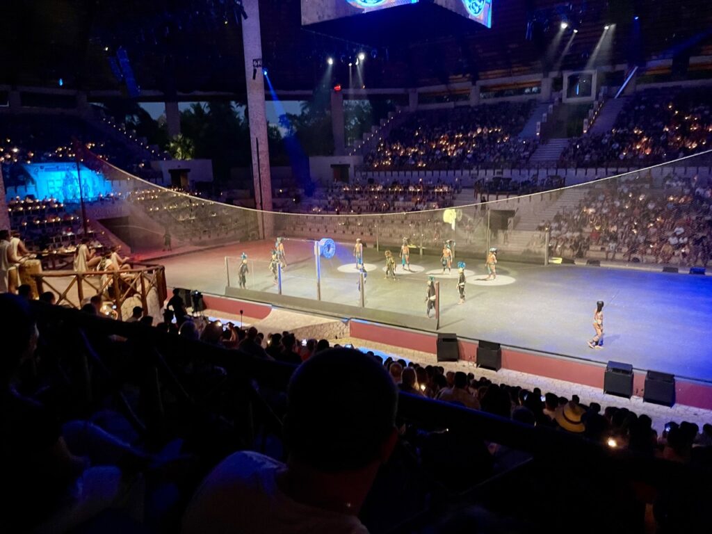 Als letztes gab es eine riesige Show, die zwei Stunden ging. Sie behandelte die Geschichte der Halbinsel von den Ureinwohnern bis zur heutigen Zeit. Zum Beispiel haben sie zwei Spiele der Maya gespielt – ein Ballspiel, das nur mit der Hüfte gespielt wird, und eine Art Hockey mit einem Feuerball.