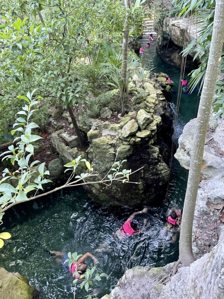 Eine Attraktion dort sind teils unterirdische Flüsse, in denen man schwimmen kann. Wir haben uns für einen entschieden, bei dem man ca. 45 min von Anfang bis Ende schwimmt. Es war wirklich schön, vor allem weil man sehr viel Natur gesehen hat und außerdem sind in einer Höhle, nur ein paar Meter über uns, viele Fledermäuse geflogen.