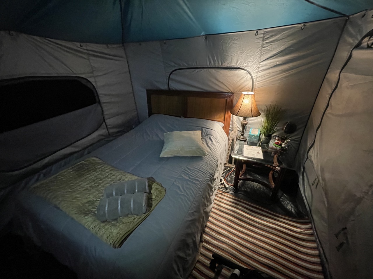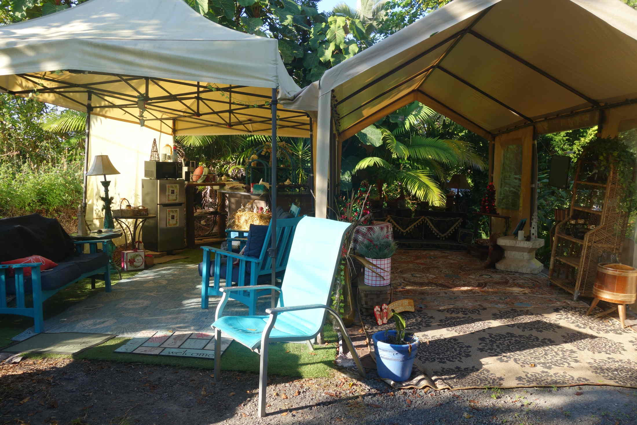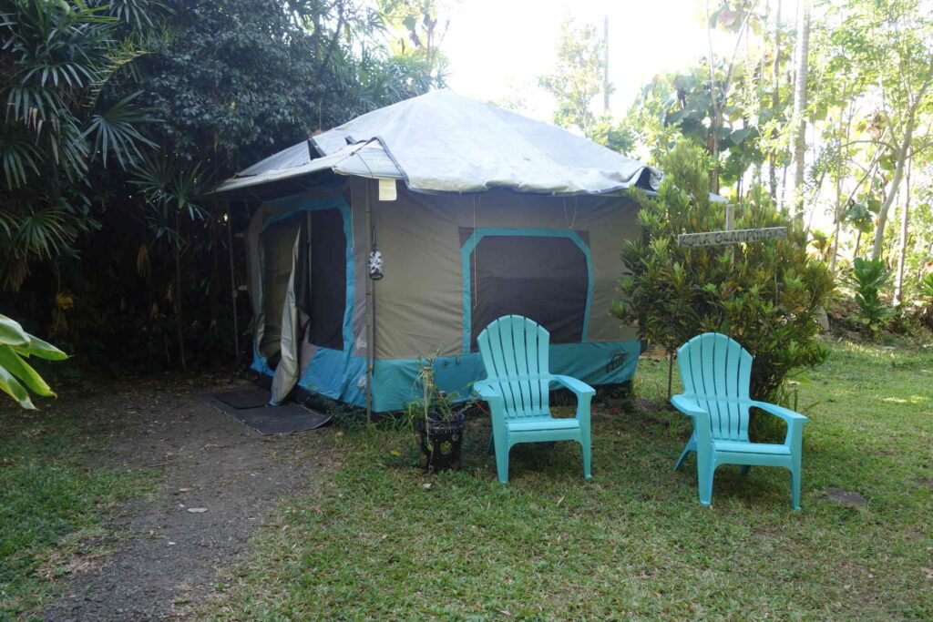 Und auch die einzige Unterkunft, die wir in der Nähe des Flughafens an der Westküste finden konnten, war ein so genanntes „Glamping“. Das ist eine Mischung aus „Glamour“ und „Camping“. Bei uns sah das so aus, dass wir fließendes Wasser und eine kleine Gemeinschaftsküche hatten, aber in einem Zelt geschlafen haben – das ein richtiges Bett hatte. Für 55 Euro pro Person eigentlich zu teuer für eine Nacht, die wir nur als Notübernachtung eingeplant hatten, aber wir hatten schließlich keine andere Wahl. Und auf Hawaii hatten wir uns an solche Preise schon gewöhnt…