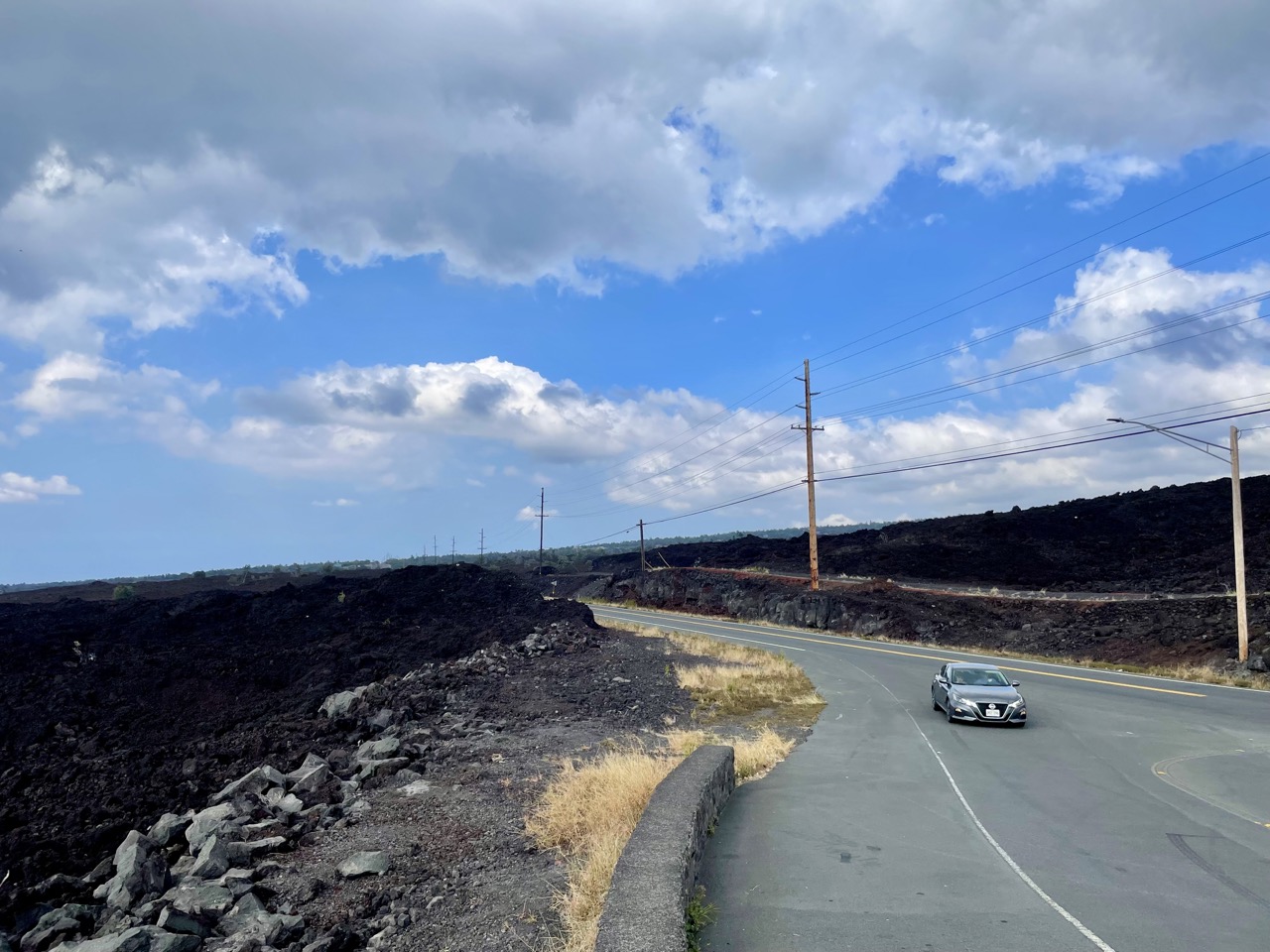 Vorbei ging es auch an einem großen Feld aus erkalteter Lava, durch dessen Gebiet die Straße führt.
